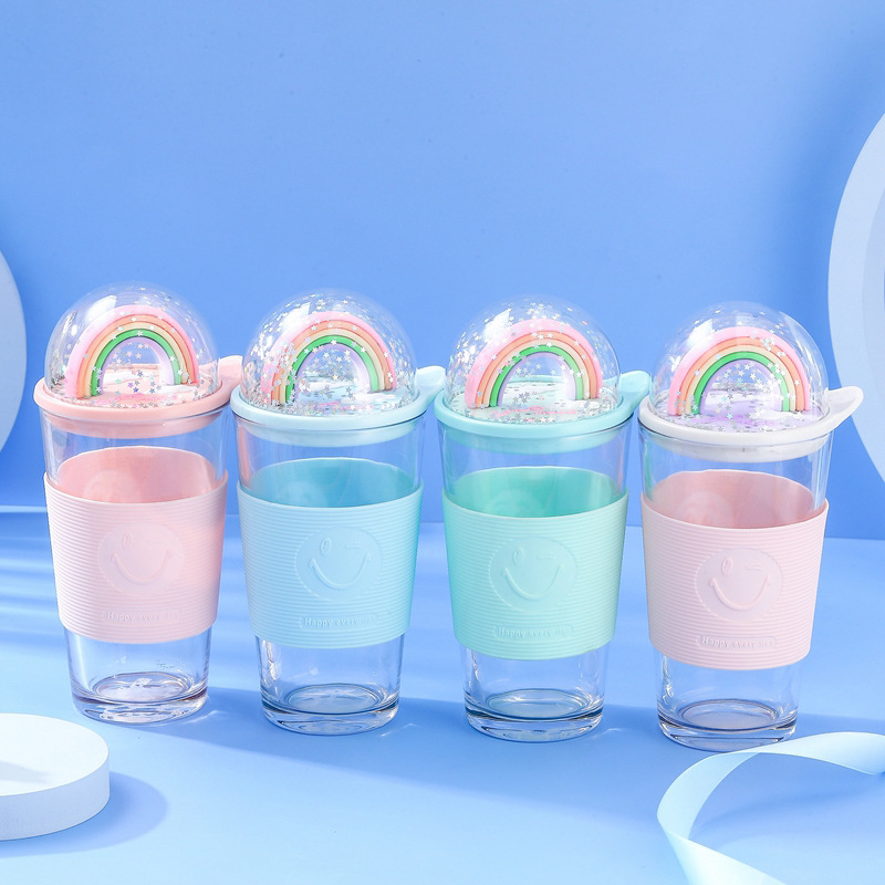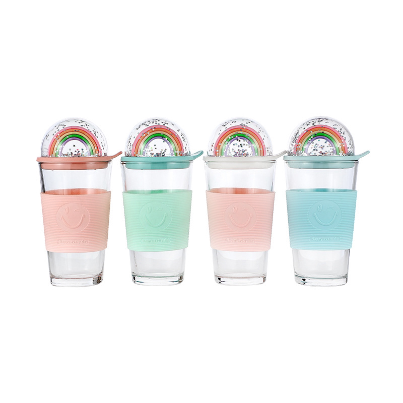 New cup smiling face creative glass rainbow micro landscape cartoon anti scald and anti fall cup manufacturers direct sa
