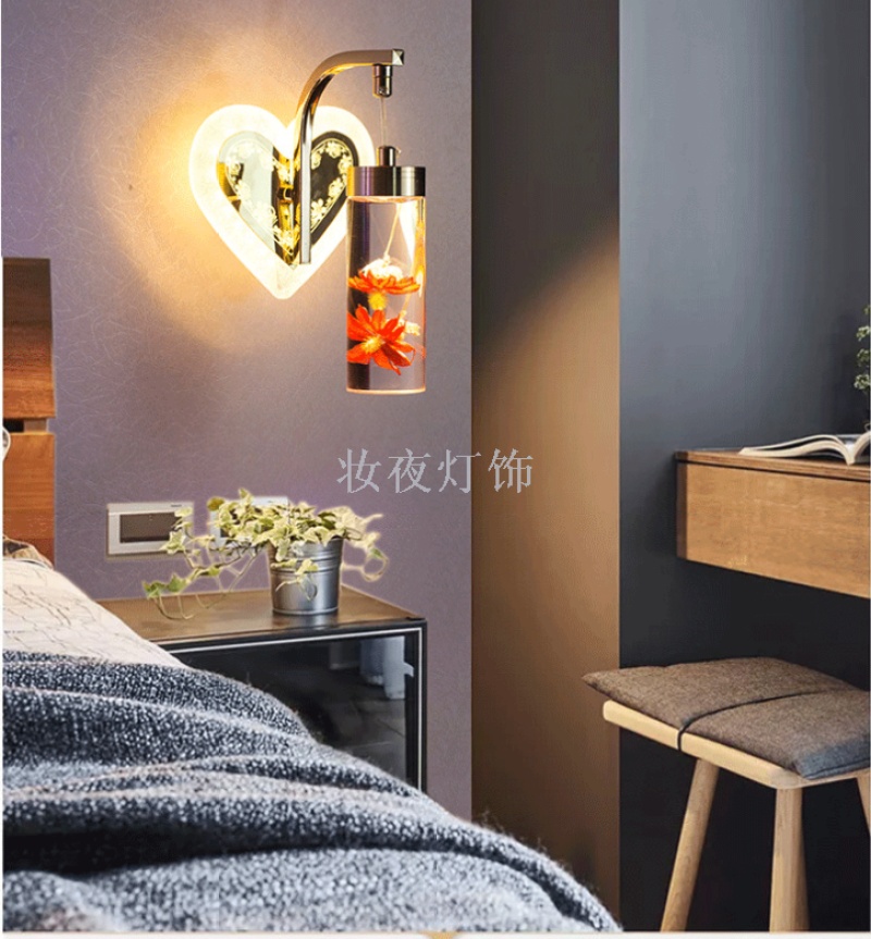 led wall lamp modern minimalist creative special decoration bedside crystal real flower nordic children tenant restaurant aisle
