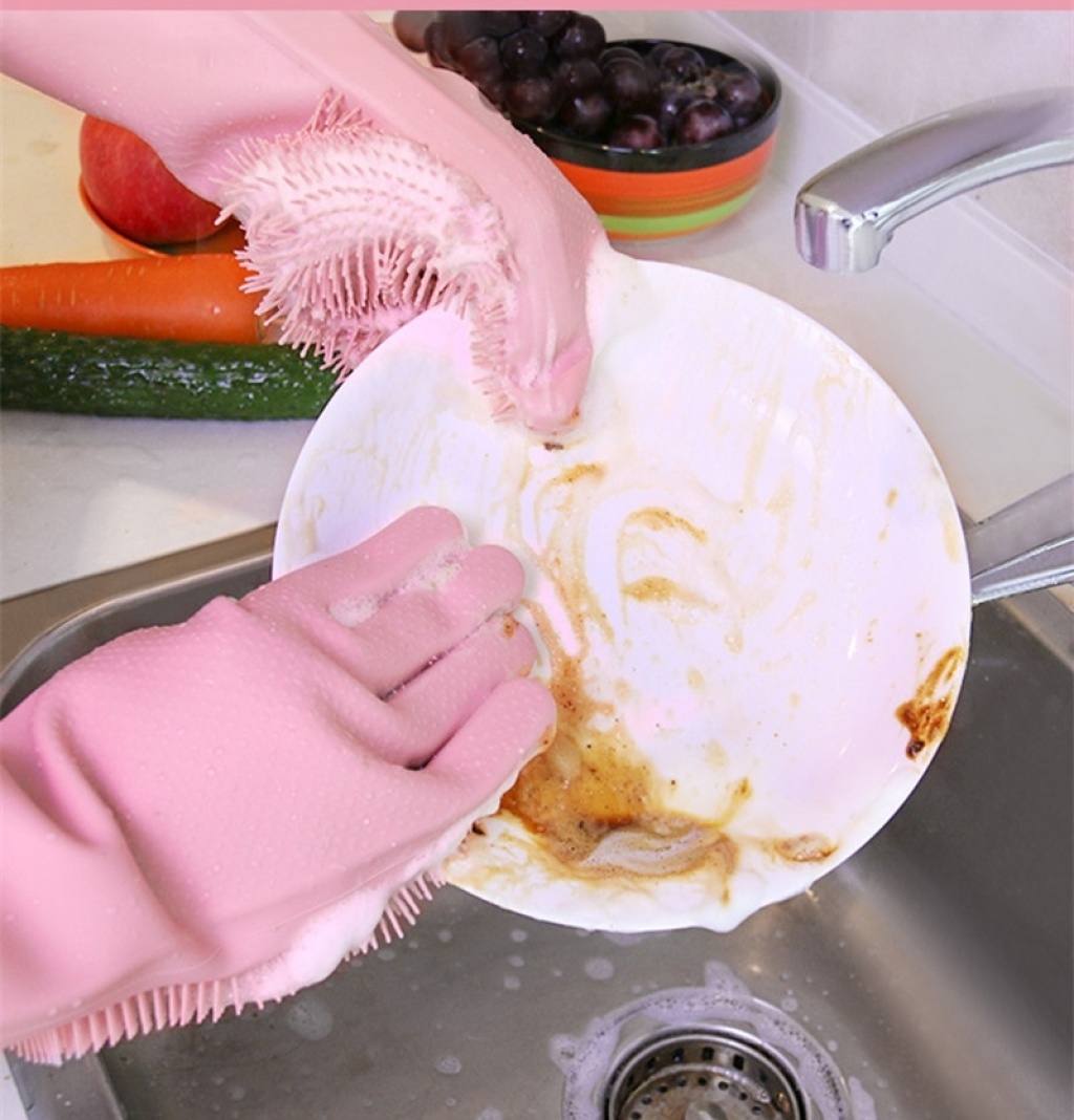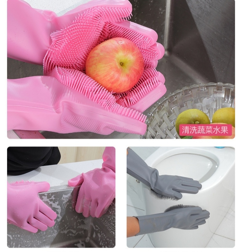 Factory Direct supply magic silicone dishwashing gloves multifunctional kitchen cleaning brush bowl silicone gloves