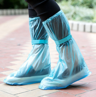 Outdoor travel non-slip shoe cover rain boots cover waterproof thickened strap high tube protective rain boots transparent shoe cover