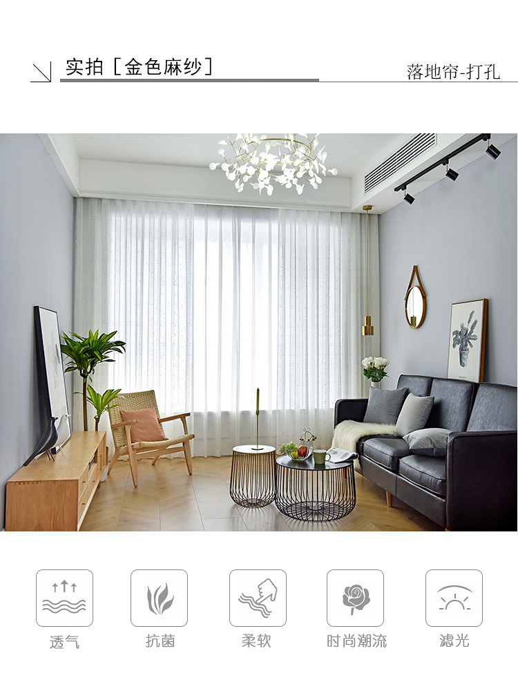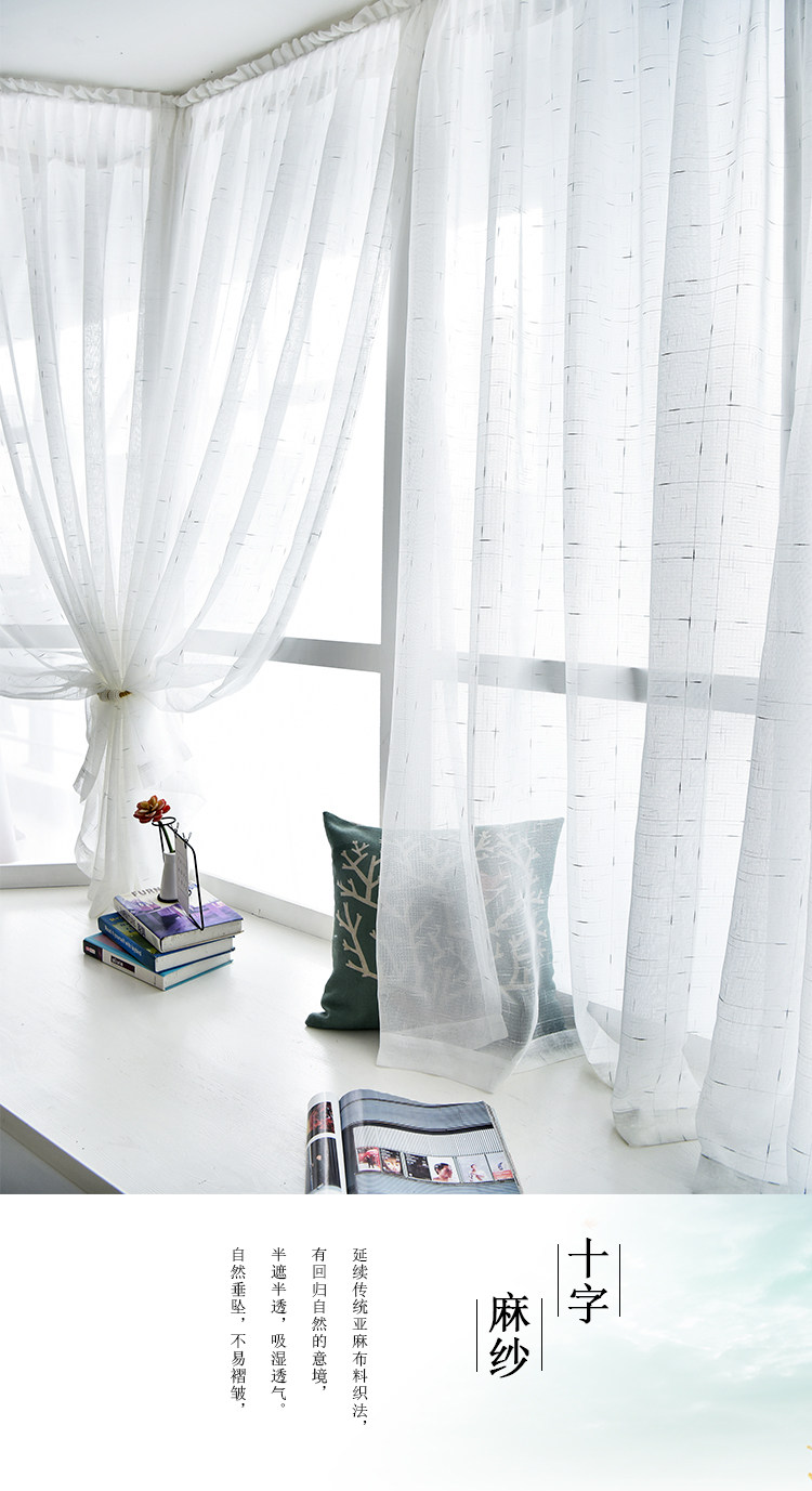 factory direct sales engineering curtain mesh curtains self-adhesive cross linen yarn installation balcony partition corner bay window sunshade yarn