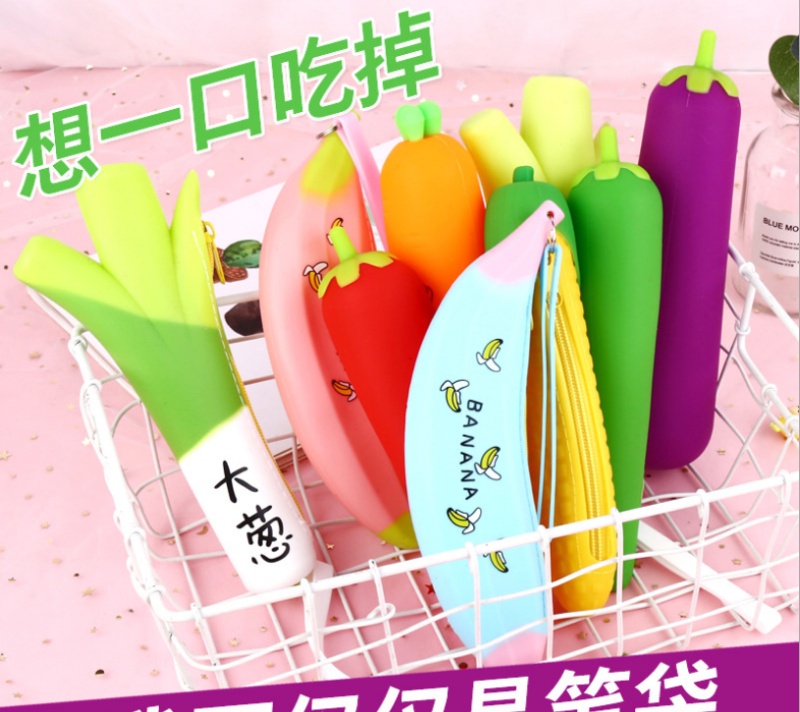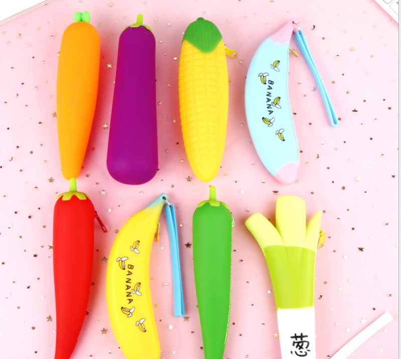 Korean Minimalist Creative Vegetable Modeling Student Pencil Case Super Cute Large Capacity Silicone Stationery Pencil Case