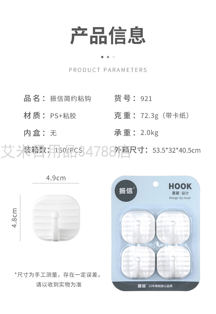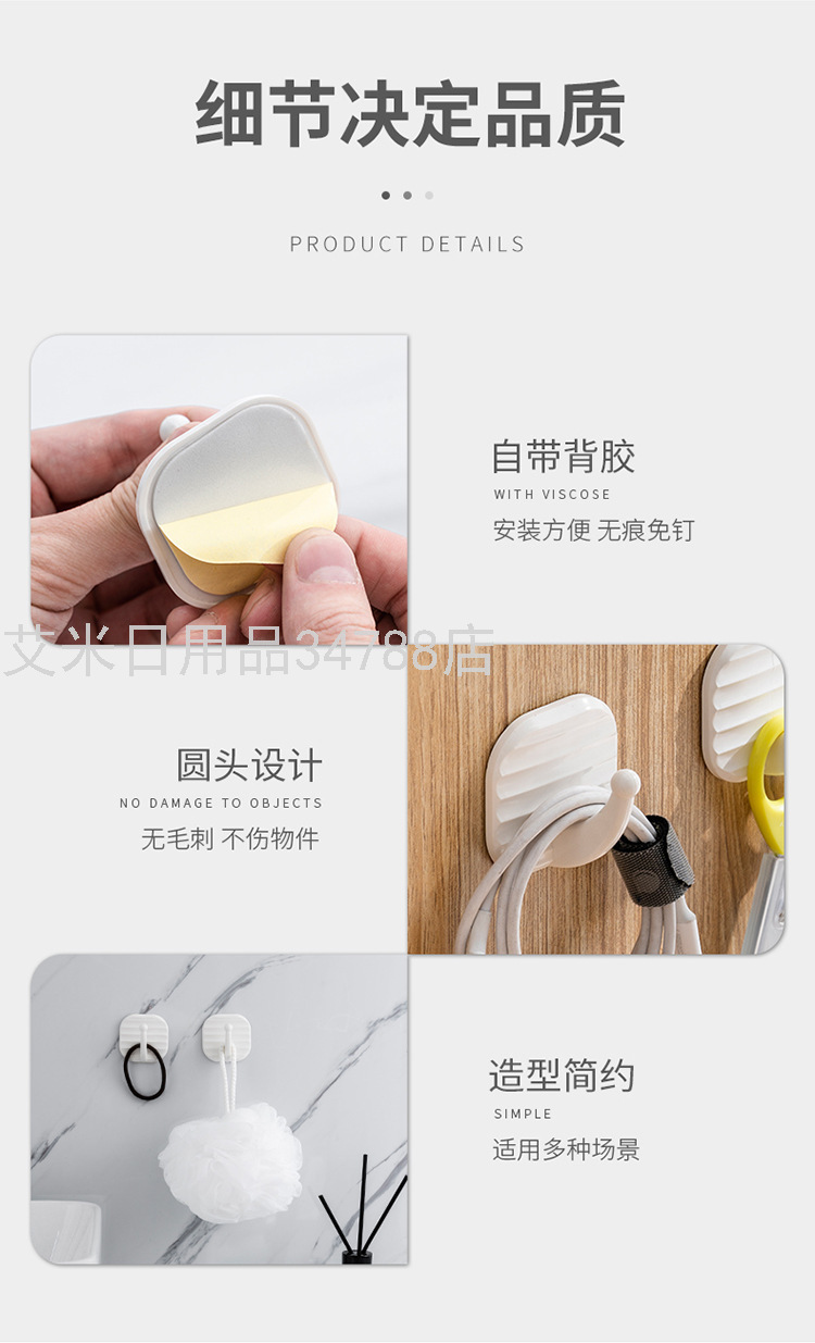 921 Strong Sticky Hook White Plastic Hook Clothes Hook Creative Cartoon Sticky Hook Seamless Wall Curtain Viscose Hook