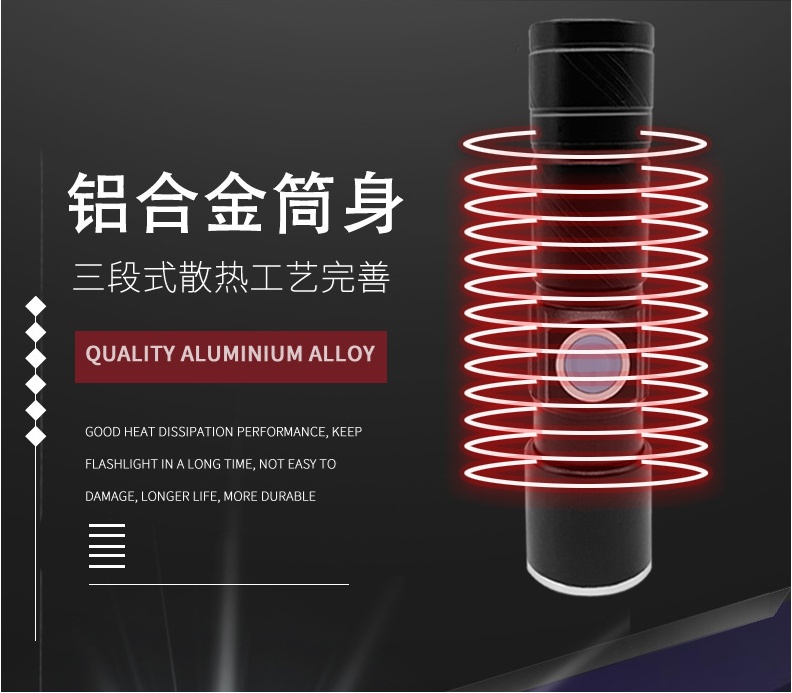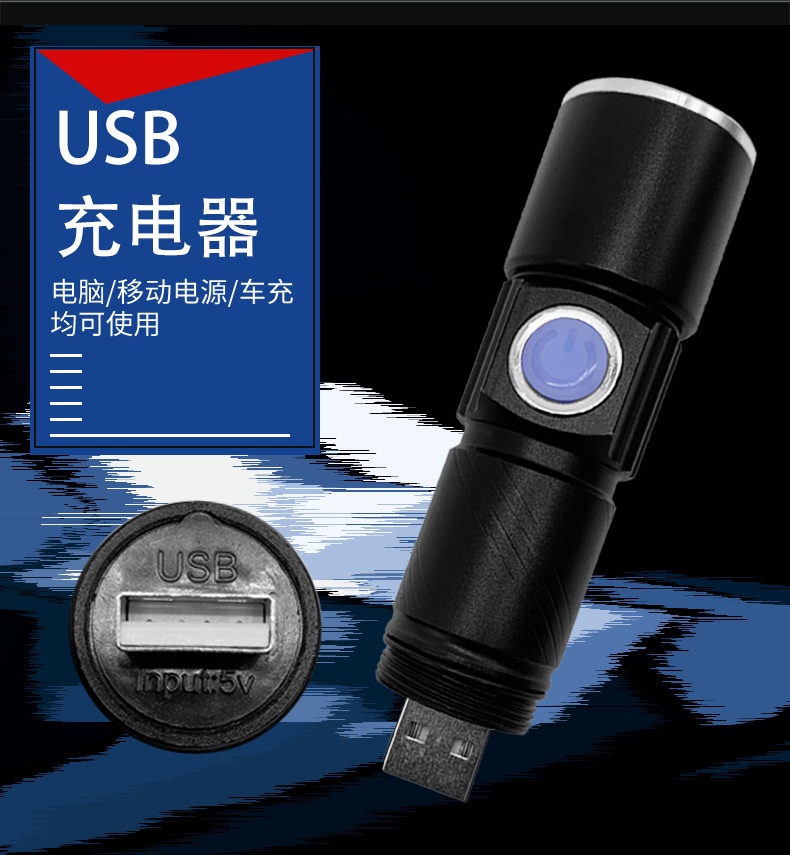 Strong Light Led Three-Gear Light Changing Multifunctional Telescopic Zoom Charging Aluminum Alloy Torch