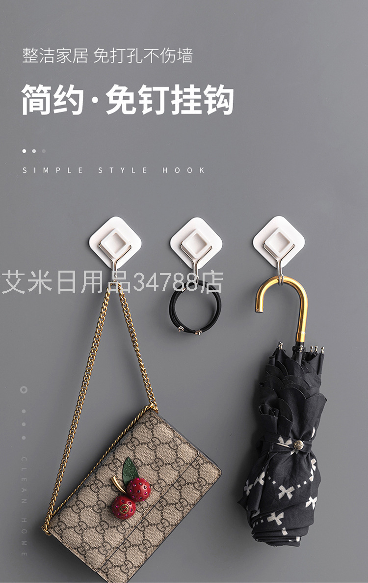 9827 Strong Sticky Hook Stainless Steel Hook Clothes Hook Cartoon Sticky Hook Incognito Wall Curtain Viscose Hook