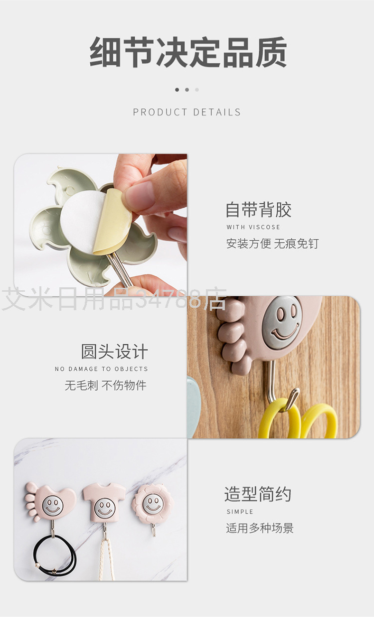 6615 Plastic Sticky Hook Wholesale Single Hook Clothes Hook Creative Sticky Hook Hook