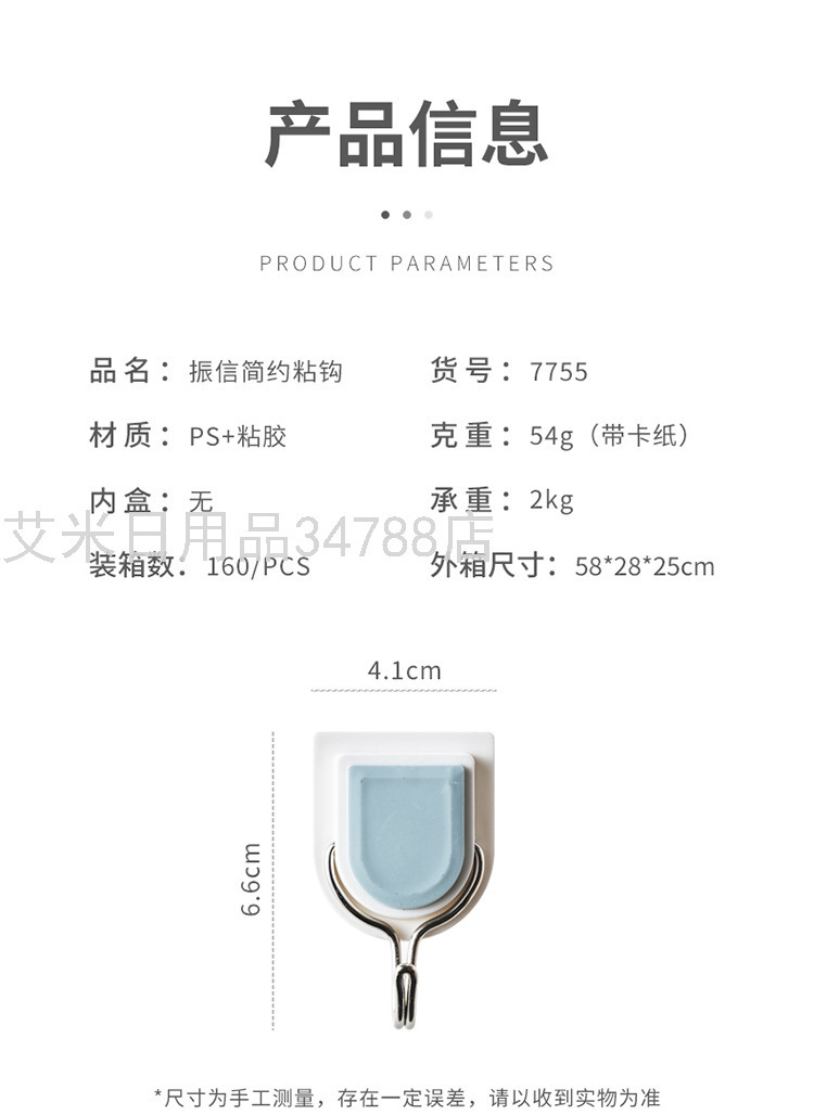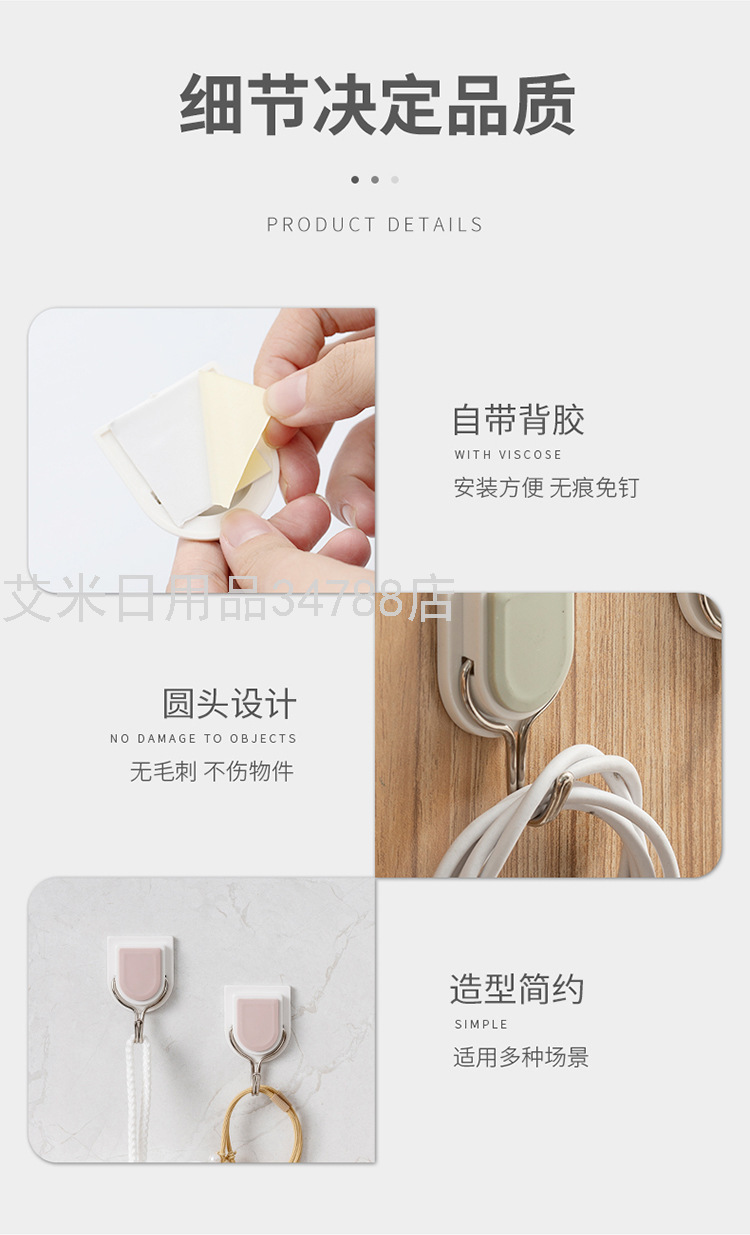 7755 Simple Hook Creative Sticky Hook Plastic Clothes Hook Strong Sticky Hook Hook