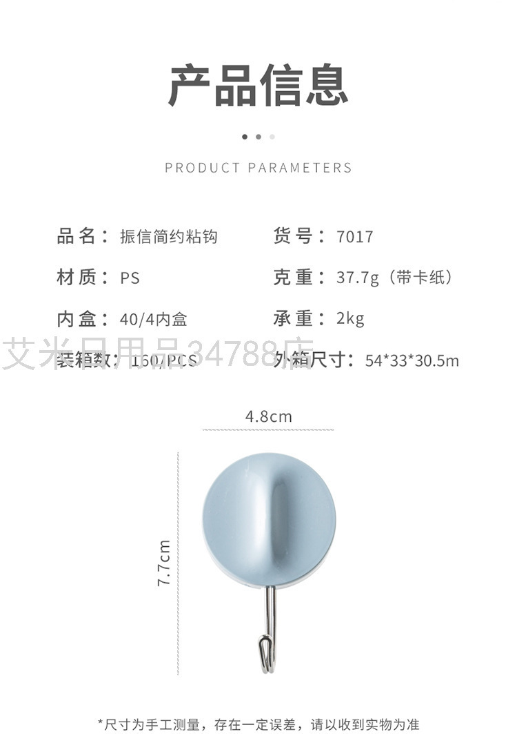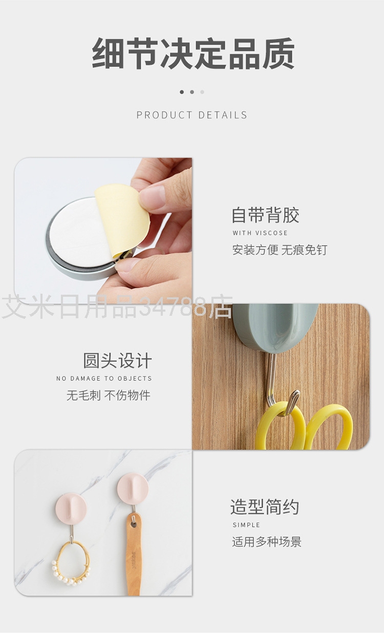 7017 Creative Clothes Hook Plastic Hook Nordic Color Simple Sticky Hook Strong Sticky Hook