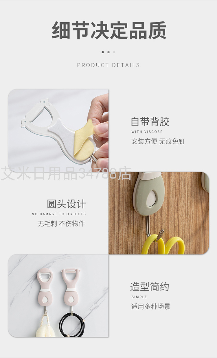7778 Sticky Hook Creative Color Hook Kitchen Bathroom Hook Simple Towel Rod Household Invisible Wall Sticky Hook