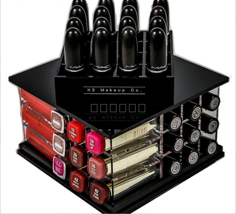 About Product:Acrylic lipstick showing stand makeup supplies storage rack acrylic desktop rotating lipstick display stand customization