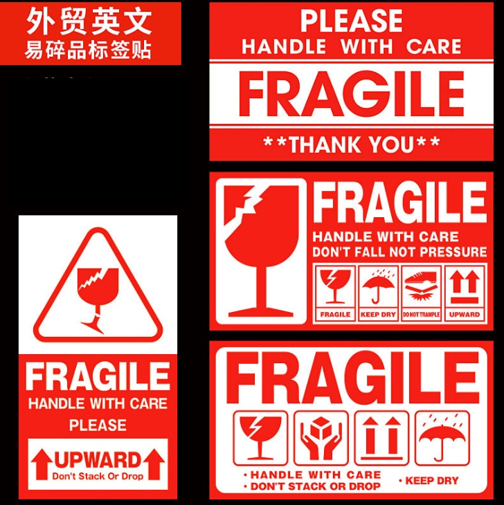 English Fragile Label Sticker Fragile Self-Adhesive Mark English Label Sticker Special for Foreign Trade Express