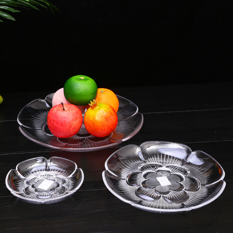 About Product:Hot sale acrylic plum fruit plate with feet multi-specification snacks snack plate transparent plastic candy dried fruit