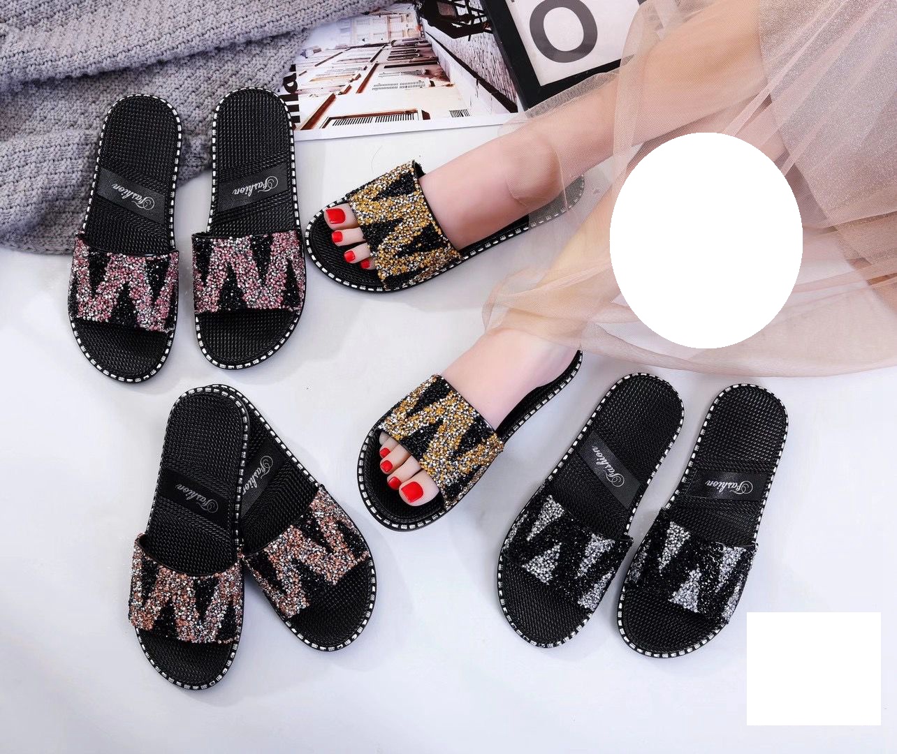Spot Supply Summer Women's Fashion Diamond Surface Slippers Comfortable Wearable All-Match Hot Sandals