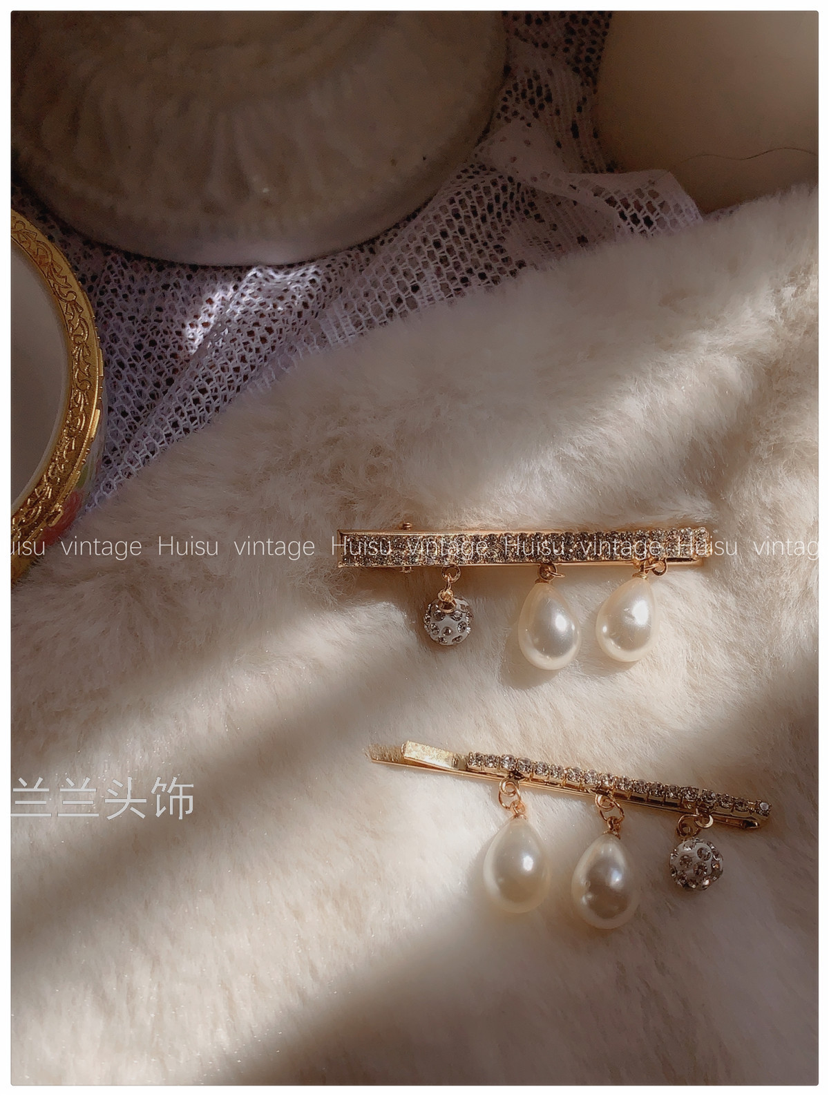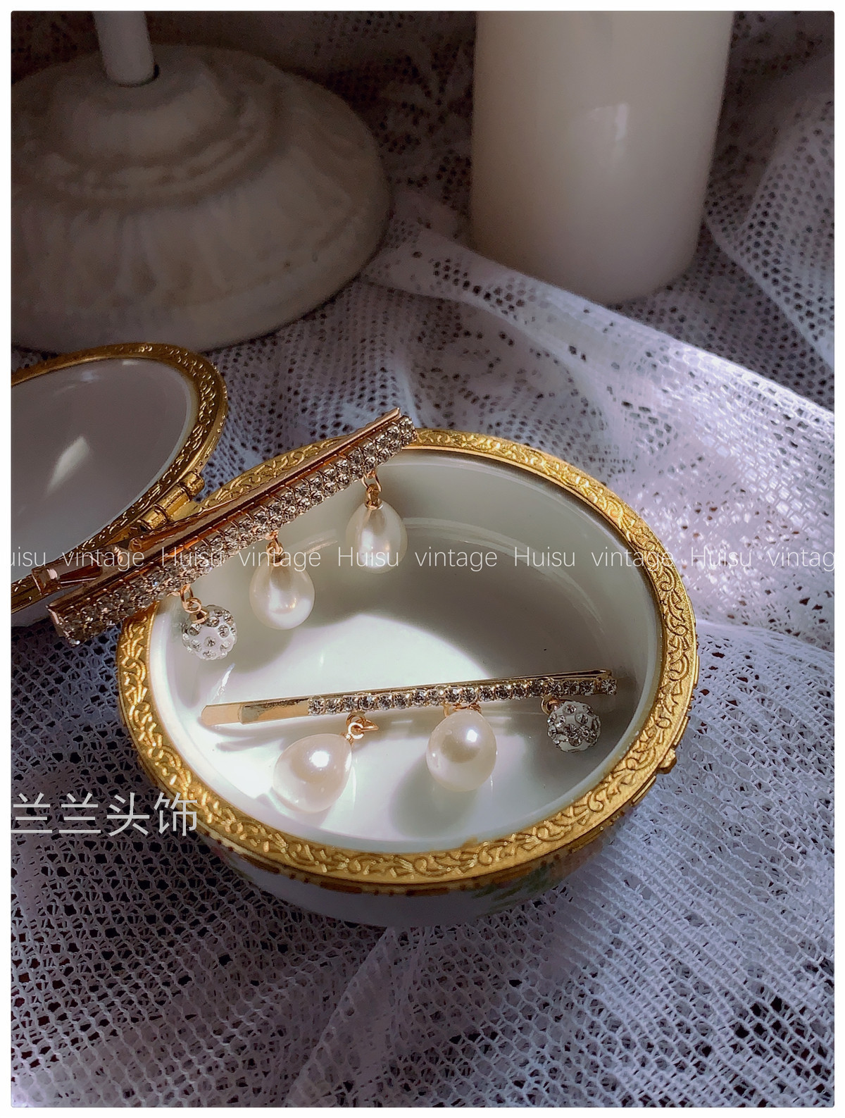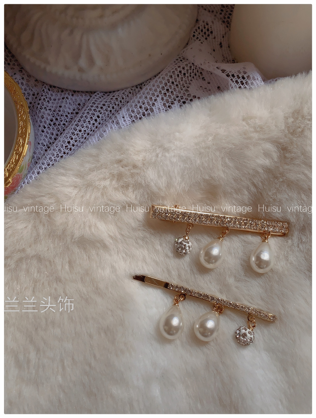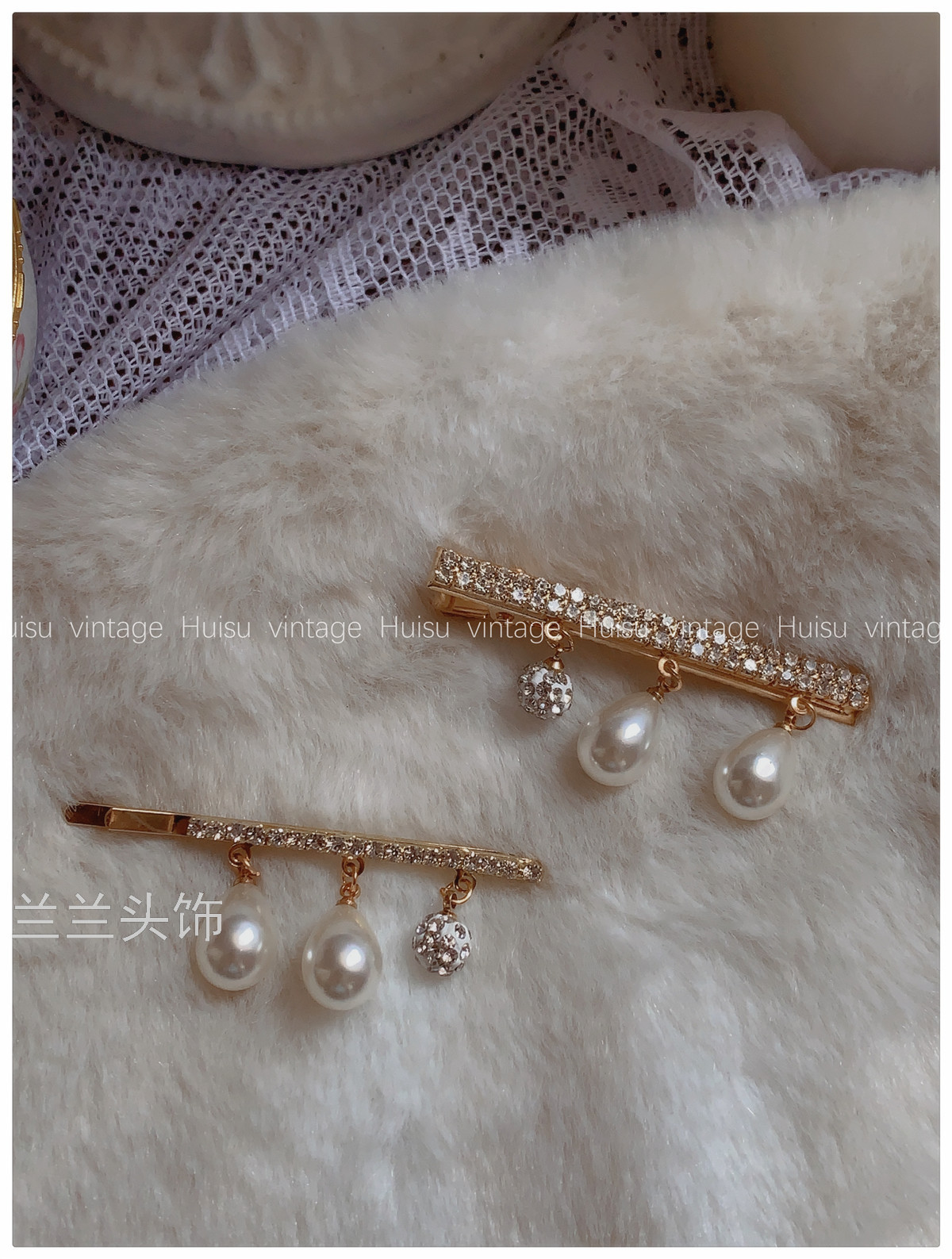 french style niche retro debutante style pearl pendant rhinestone barrettes elegant outfit