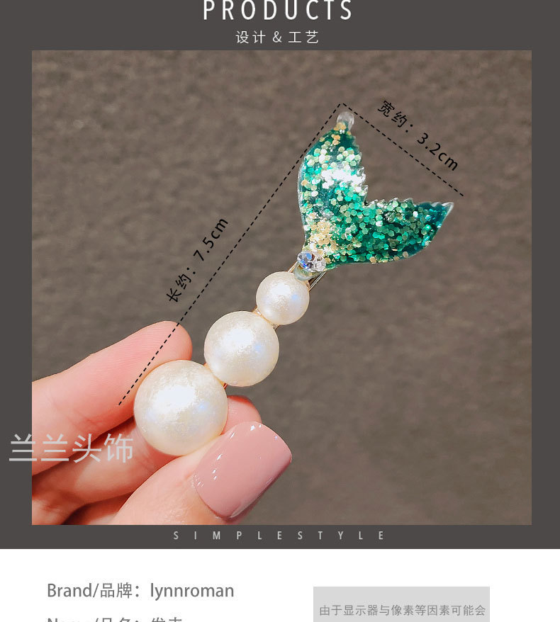 south korea dongdaemun rhinestone imitation pearl fish tail barrettes vacation style duckbill clip girl bang clip hairpin