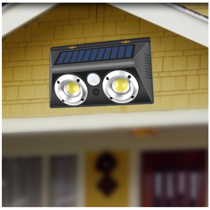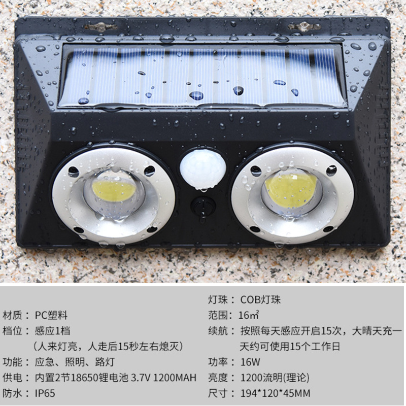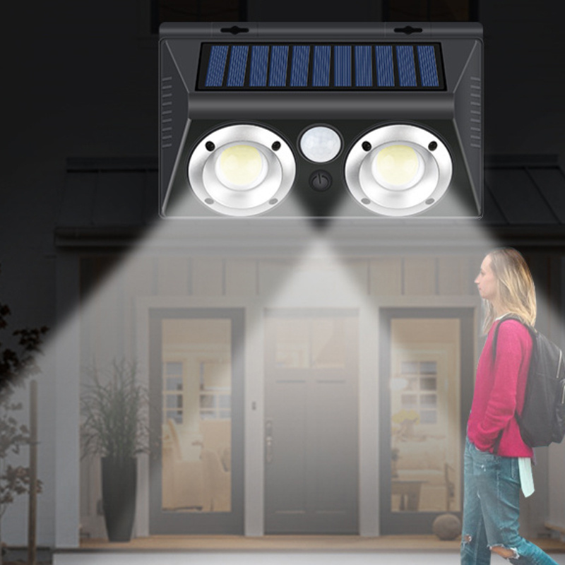 Binary solar wall lamp with human body induction, COB technology, waterproof for outdoor use in gardens and villa streets.