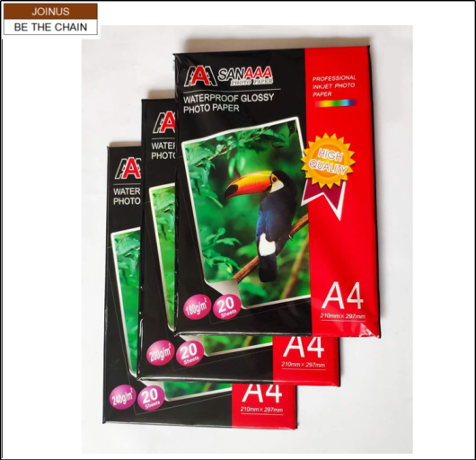About Product:240G A4 防水单面相片纸高光照片纸彩色喷墨打印20张一包 240G A4(210x297mm) water proof glossy photo paper professional inkjet photo paper 20sheets each pack AF-3414-3