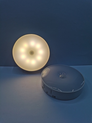 New induction lamp small night lamp, ABS material 9 LED lamp beads warm light or white light, USB charging configuration a USB cable, induction lamp lights up when the human body passes by at night, and automatically goes out when the person leaves for about 30 seconds, you can also turn on the switch for a long time, with magnet and double-sided adhesive tape on the back. This is a small night lamp with novel design, cheap and good quality, and a box of 200 pieces is packed separately. Welcome new and old customers to buySize: 8.3x1. 9cm.