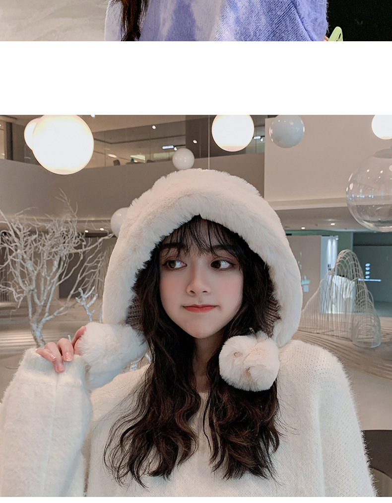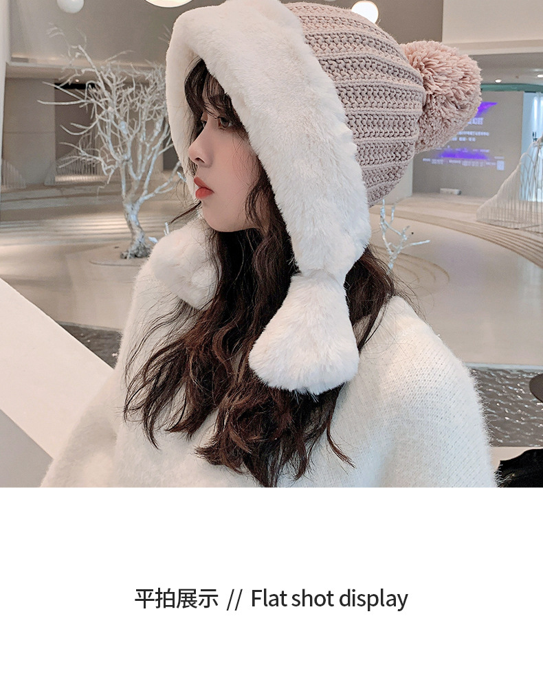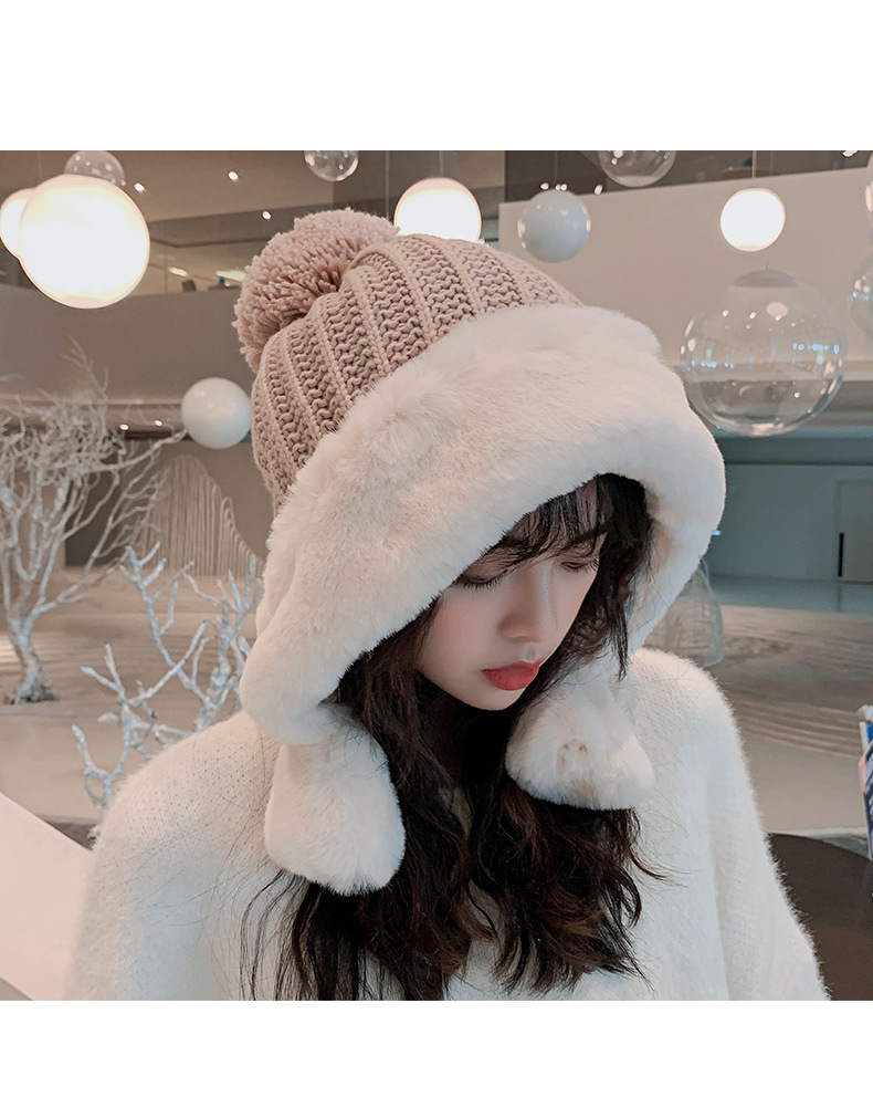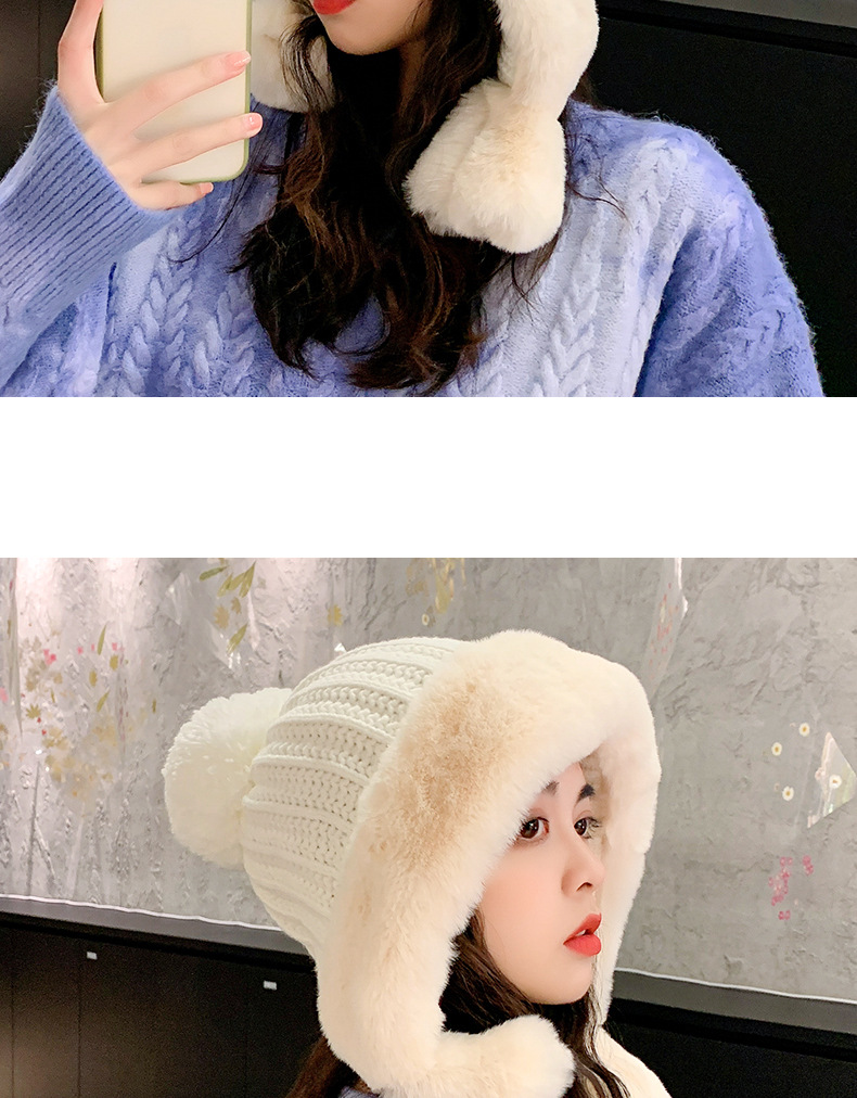 Knitted hat hat suitable for round faces women's autumn and winter all-match face-looking small net red tide wool ushanka fleece-lined Earflaps