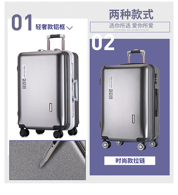 About Product:Frosted Aluminum Frame Pc Universal Wheel Trolley Case Suitcase with Combination Lock 1801 for Men and Women