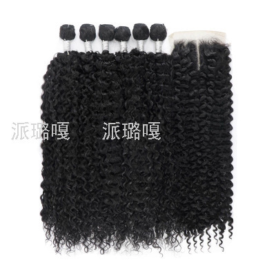 european and american foreign trade chemical fiber hair curtain hair block curly 7-piece long straight wig