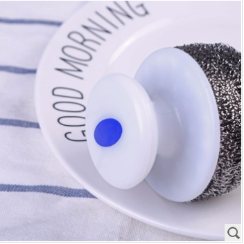 New Steel Wire Cleaning Ball Sanitary Cleaning Wok Brush White Plastic Handle