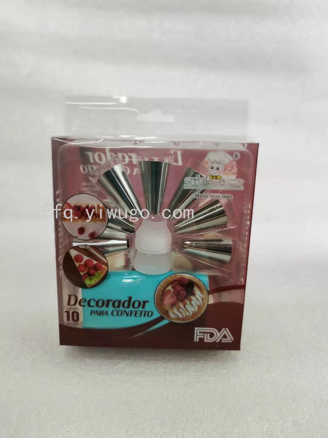 12-mouth stainless steel pastry tube + decorating pouch pvc box