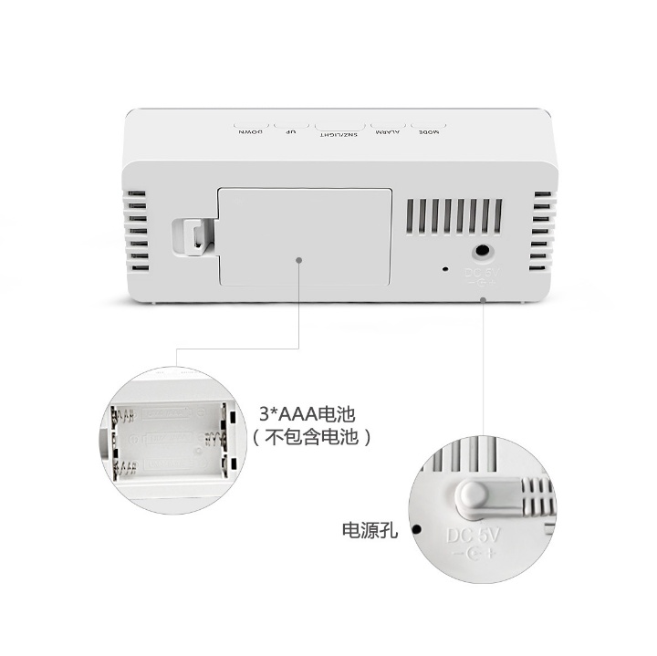five function buttons (MODE,ALARM,SNZ / LIGHT,UP,DOWN)