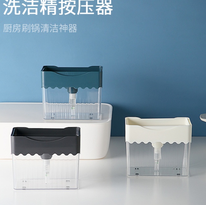 Creative Kitchen Brush Detergent Liquid Dispenser Press Type Automatic Liquid Outlet Box Scouring Pad Dish Brush Soap Lye Box Direct Sales