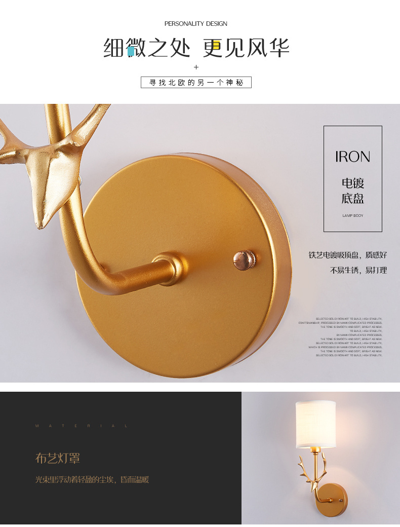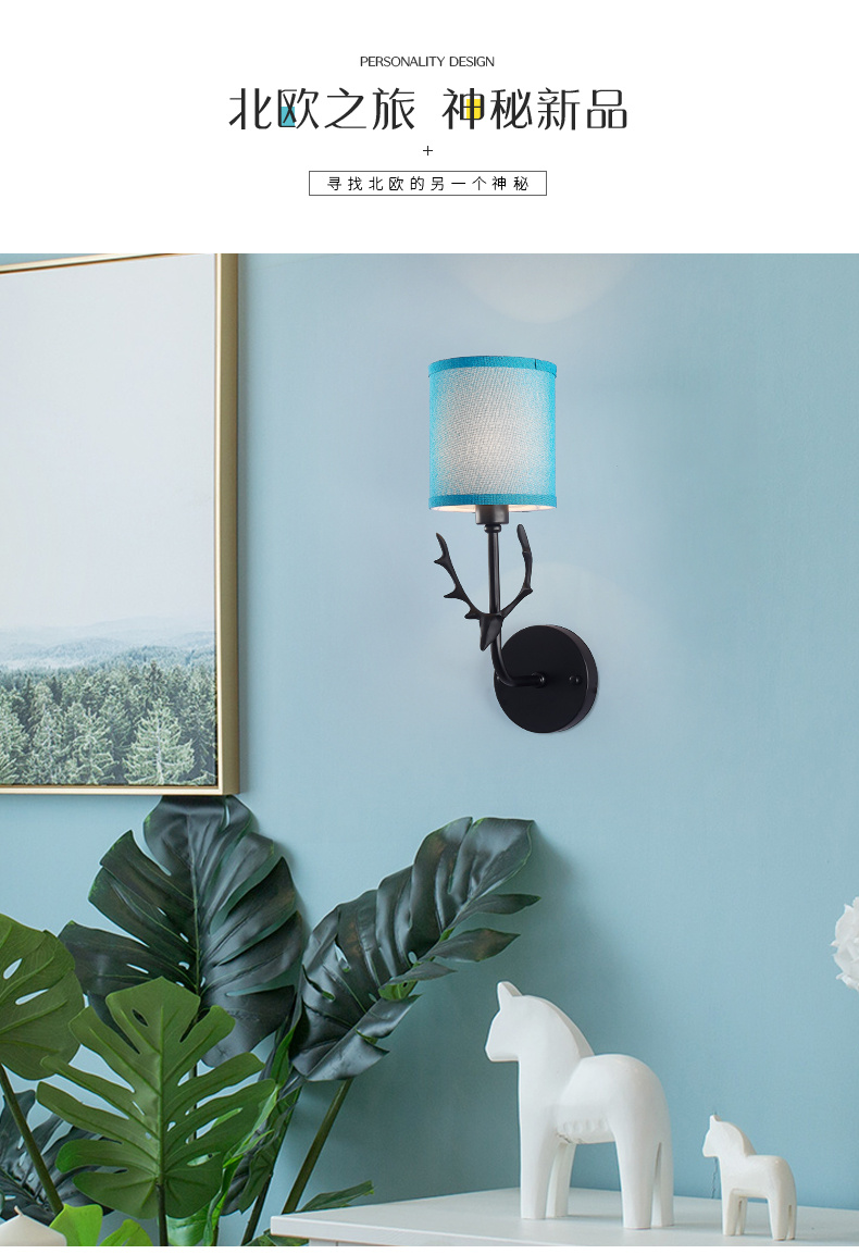 Indoor European style creative deer antler wall lamp bedroom bedside LED simple living room corridor corridor stairs stairs light