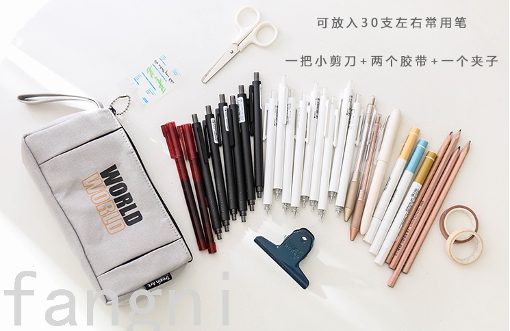 factory direct domestic and foreign trade new student large capacity canvas front open bag triangle pencil case storage bag stationery bag