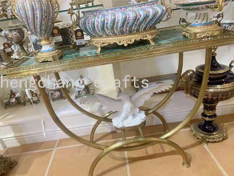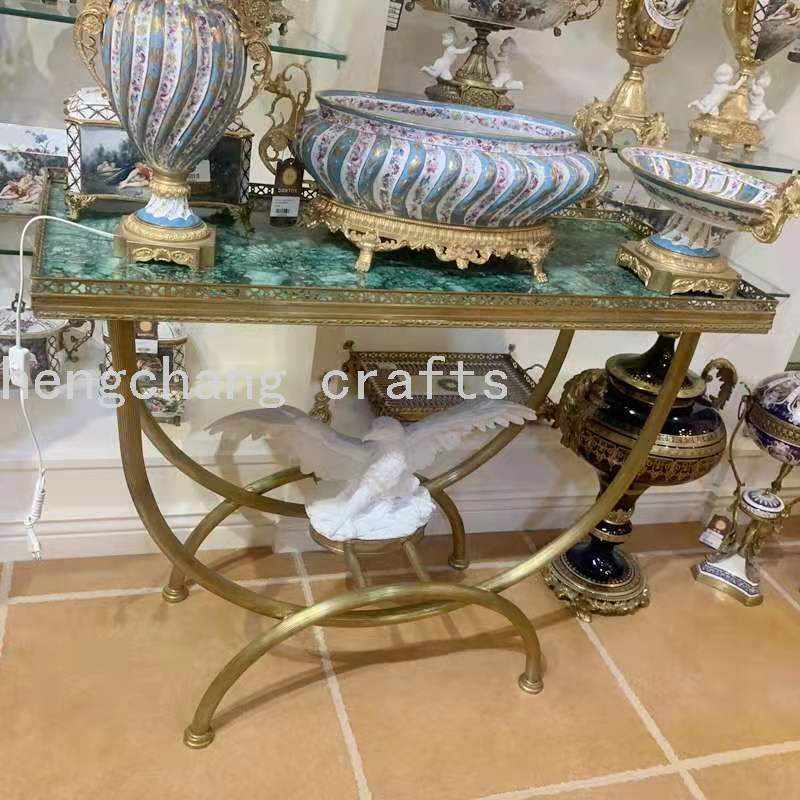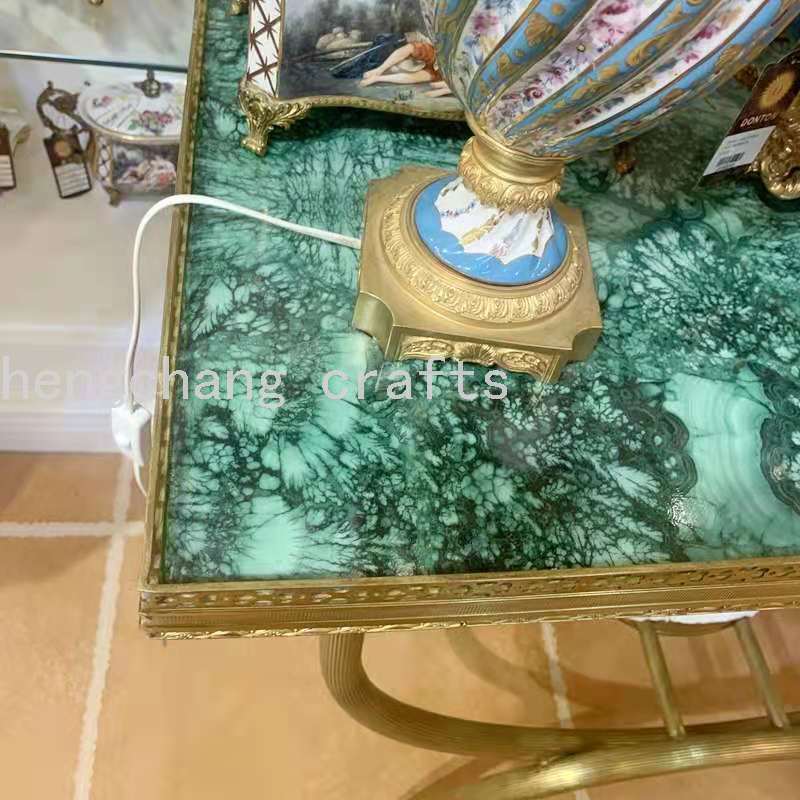European-Style Copper and Hand-Painted Ceramic Imitation Malachite Hallway Sofa Back Decoration Table