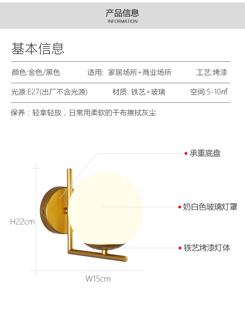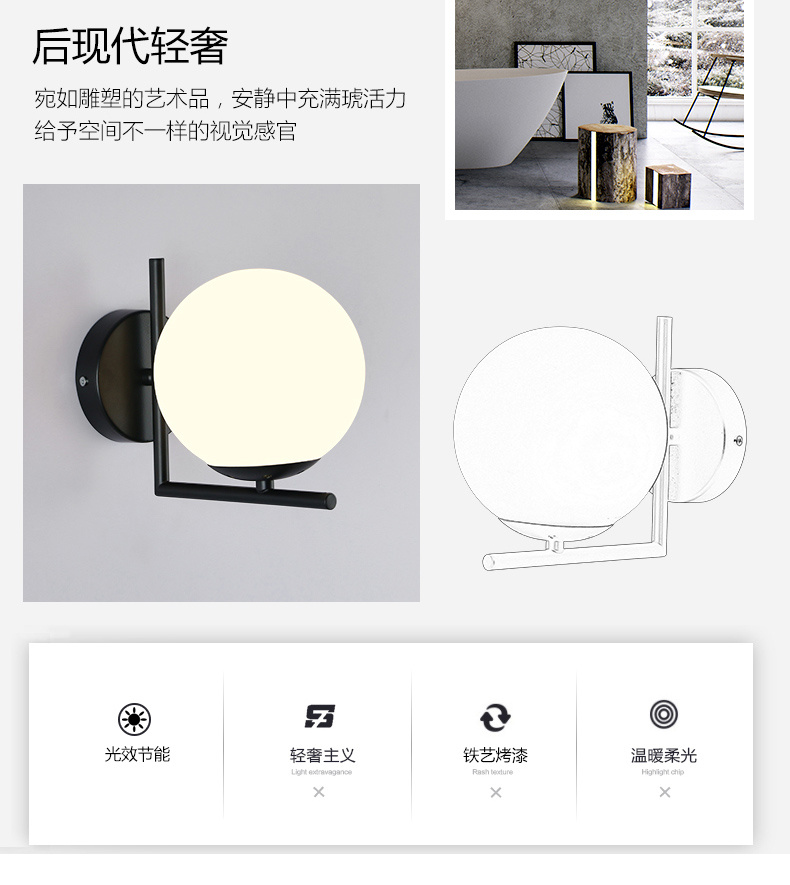 Nordic creative wall lamp, European-style indoor bedroom headboard wall lamp, American-style living room corridor corridor staircase lamp