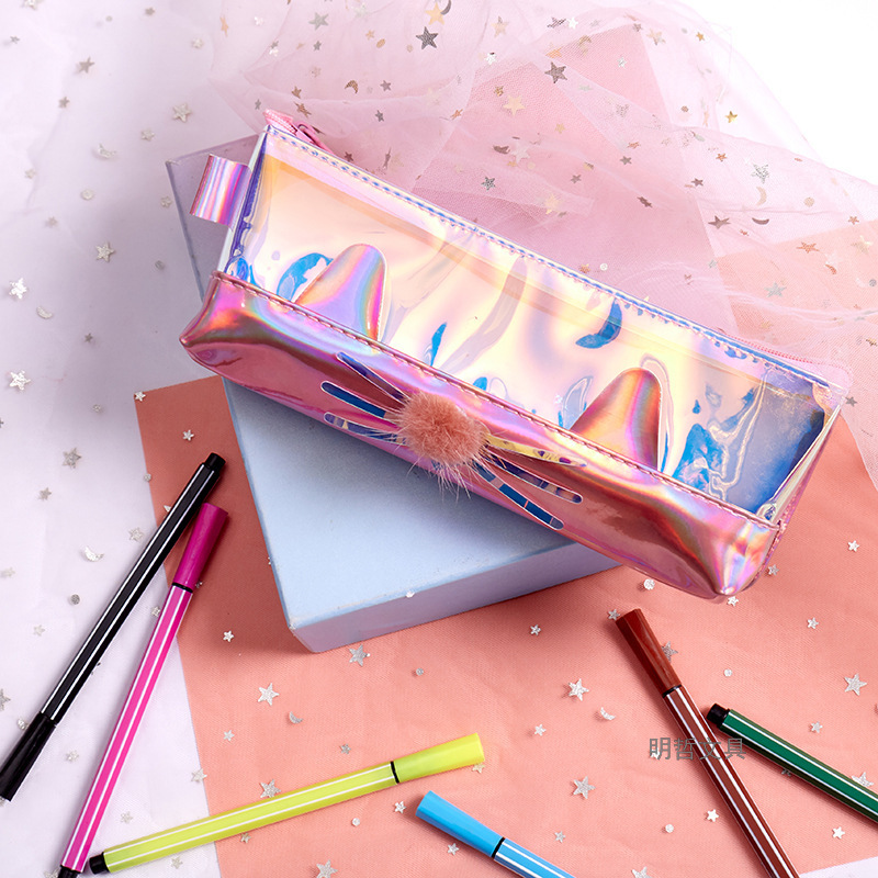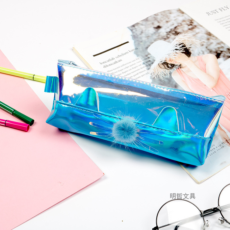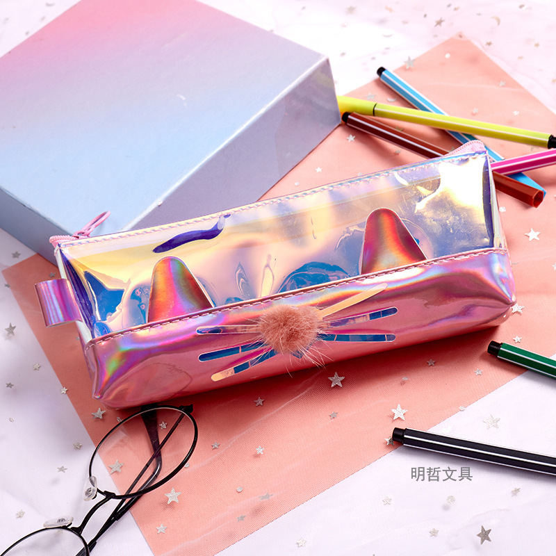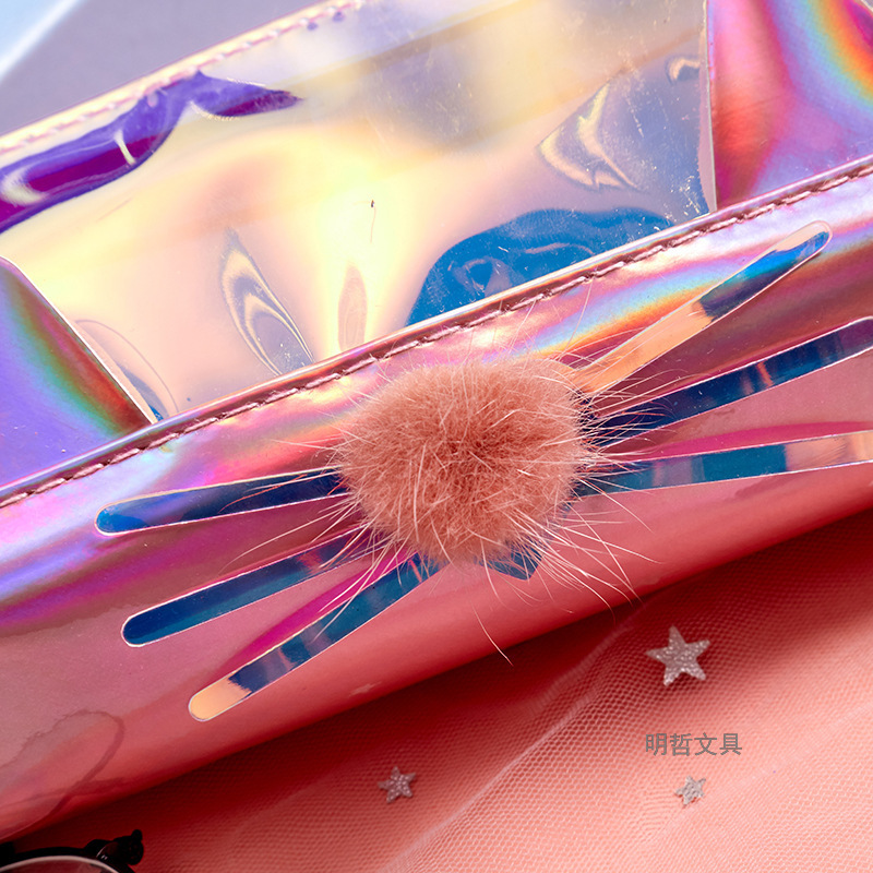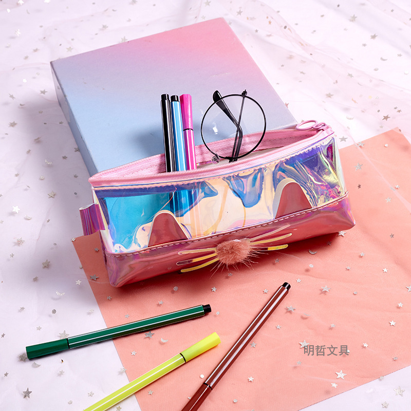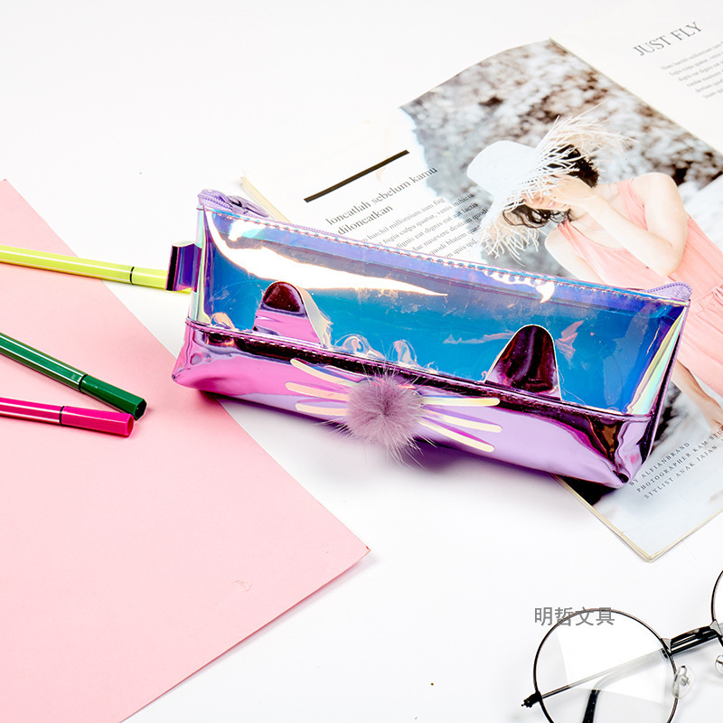 Korean Style New Creative Large Capacity Laser Cat Shape Pencil Case Waterproof Sequins Gift Stationery Bag Cosmetic Bag