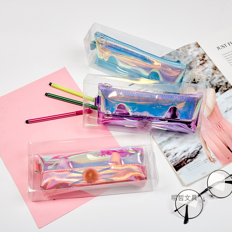 About Product:Korean Style New Creative Large Capacity Laser Cat Shape Pencil Case Waterproof Sequins Gift Stationery Bag Cosmetic Bag