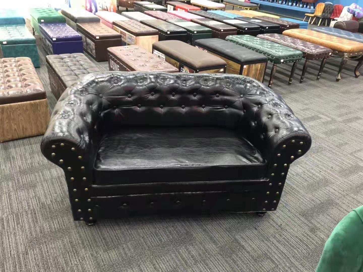 lv character furniture european retro leather art double three-person combination cafe bar small apartment clothing store sofa