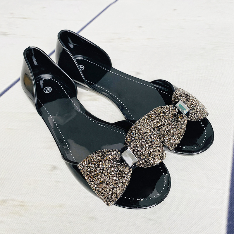 women's fashion slippers diamond bow crystal shoes pvc comfortable leisure outdoor beach shoes