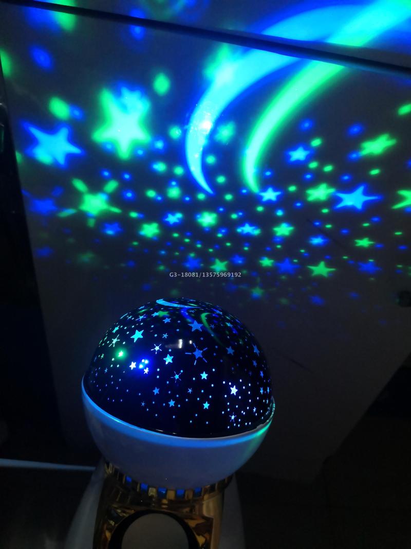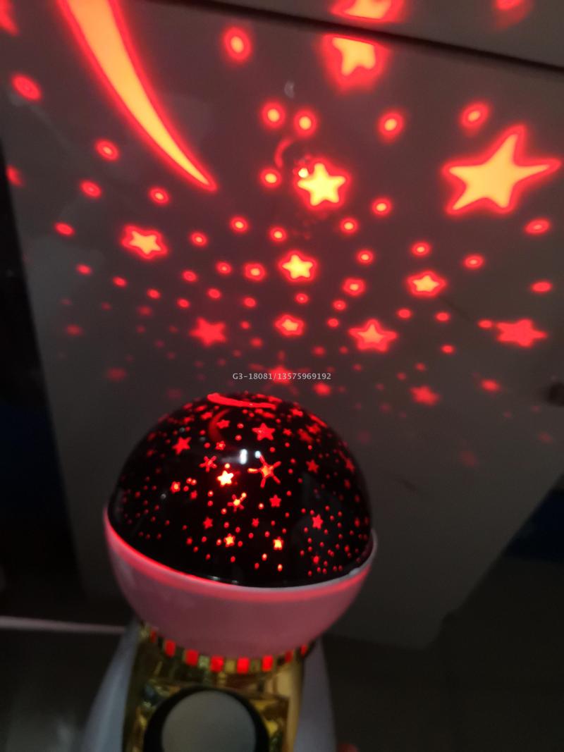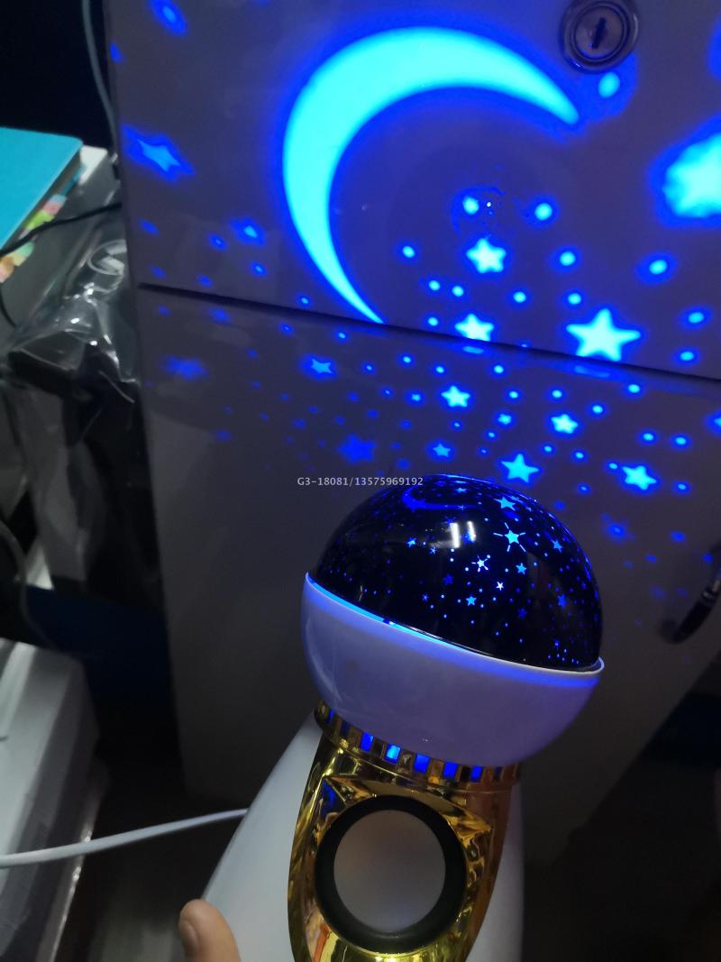 Product Usage: After the light is powered on, turn on the Bluetooth of the mobile phone or other devices, connect to the Bluetooth of the light successfully, then turn on the music player, play any music at will, magic ball can play music, the motor in the lamp body rotates with the music, and the light emits the pattern of starry sky XINGX and moon.