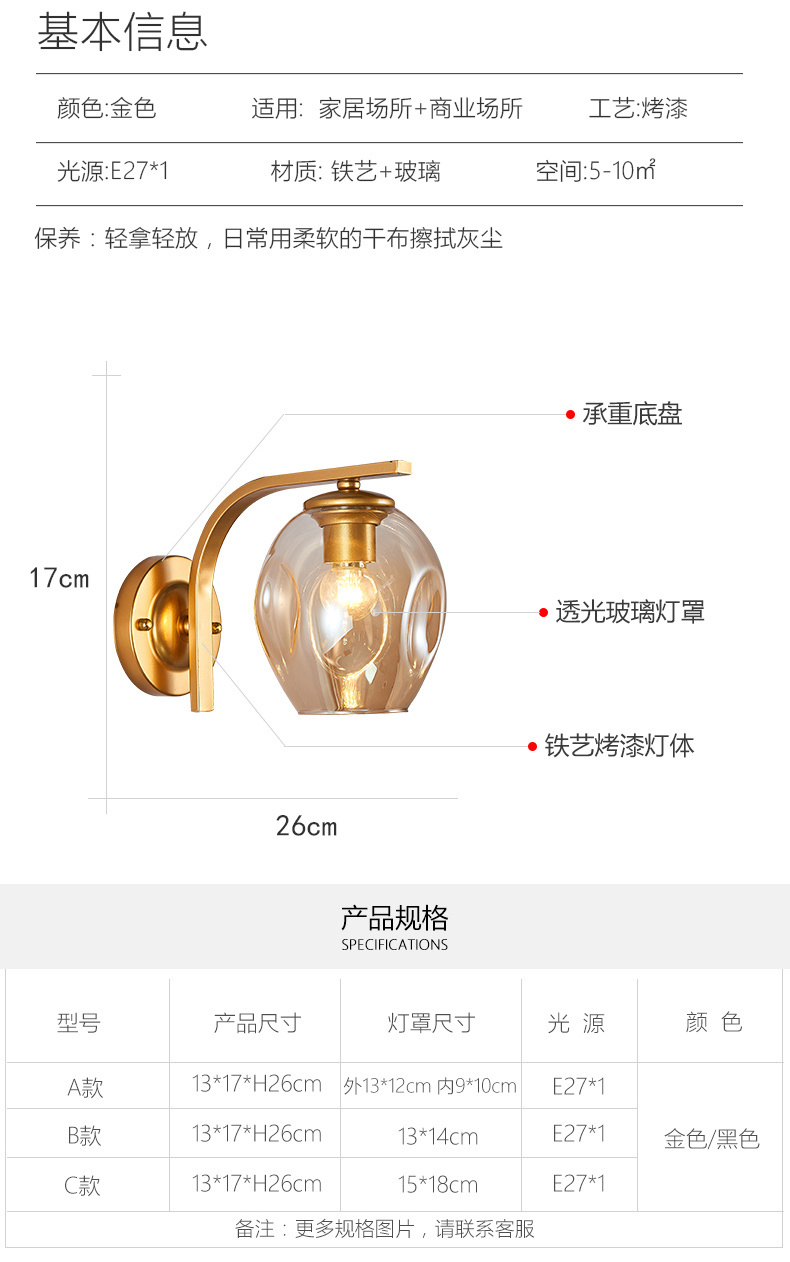 Nordic wall lamp, minimalist modern creative indoor bedroom stair corridor wall lamp, European hotel lighting