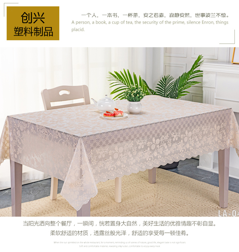 Product Features:This product is suitable for use in hotels, hotels, Western restaurants, home kitchens, private clubs, and other occasions. The tablecloth is designed in a rectangular shape, which can play a role in cleaning, dust prevention, and water prevention. It is mainly used as a table cover, with novel designs, elegant and elegant shapes, and exquisite and fashionable.
