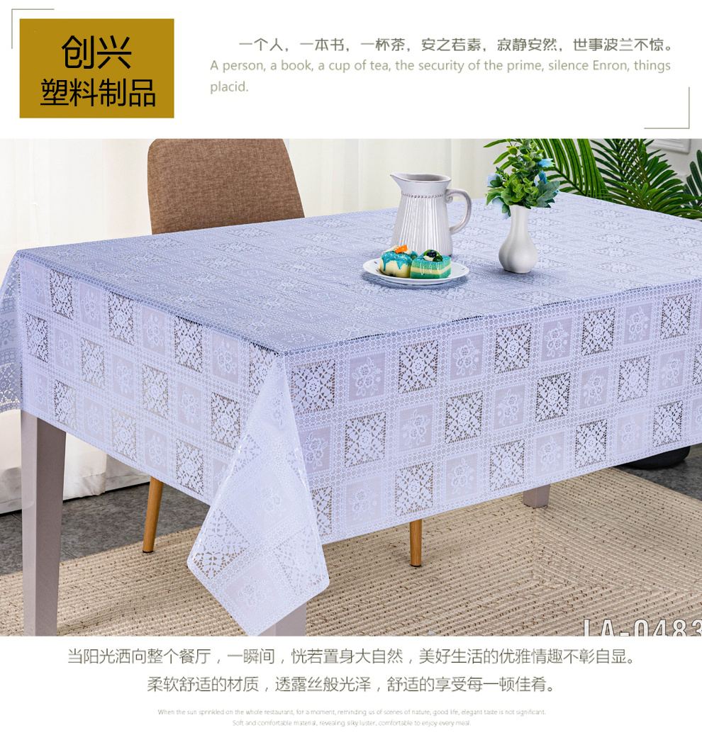 Product Features:This product is suitable for use in hotels, hotels, Western restaurants, home kitchens, private clubs, and other occasions. The tablecloth is designed in a rectangular shape, which can play a role in cleaning, dust prevention, and water prevention. It is mainly used as a table cover, with novel designs, elegant and elegant shapes, and exquisite and fashionable.
