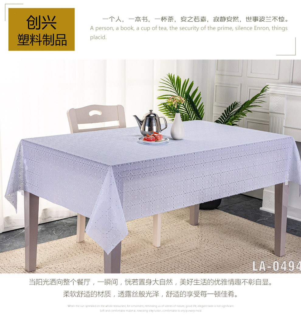 Product Features:This product is suitable for use in hotels, hotels, Western restaurants, home kitchens, private clubs, and other occasions. The tablecloth is designed in a rectangular shape, which can play a role in cleaning, dust prevention, and water prevention. It is mainly used as a table cover, with novel designs, elegant and elegant shapes, and exquisite and fashionable.