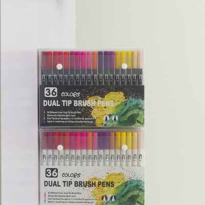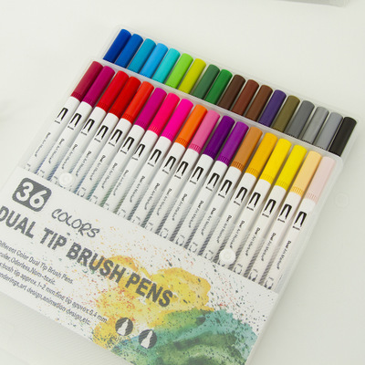 New Black Stick White Penholder 36-Color Graffiti Color Pencil Primary School Children's Dual tip brush Pen Brush