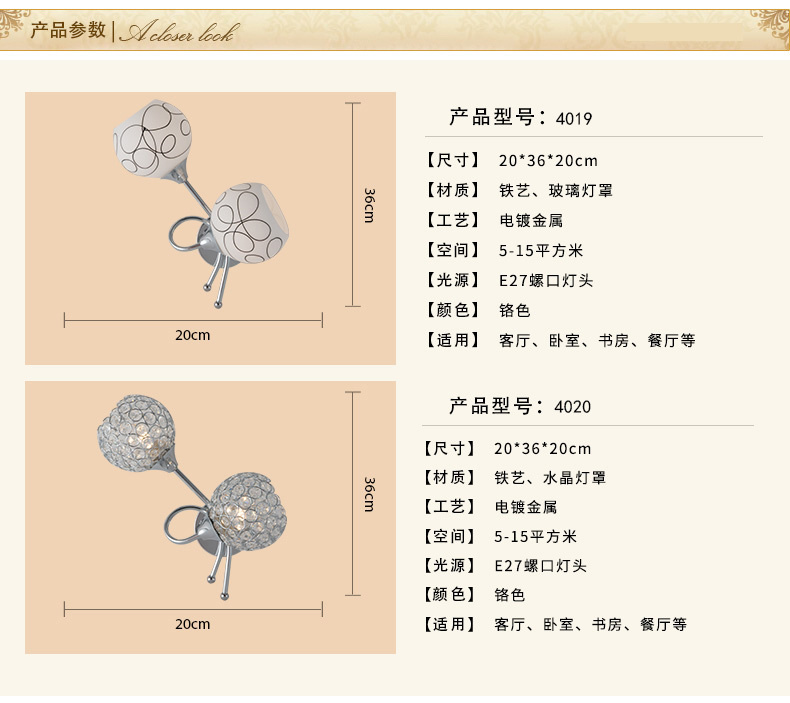 Creative wall lamp LED modern and simple crystal bedside wall lamp European style staircase corridor corridor light