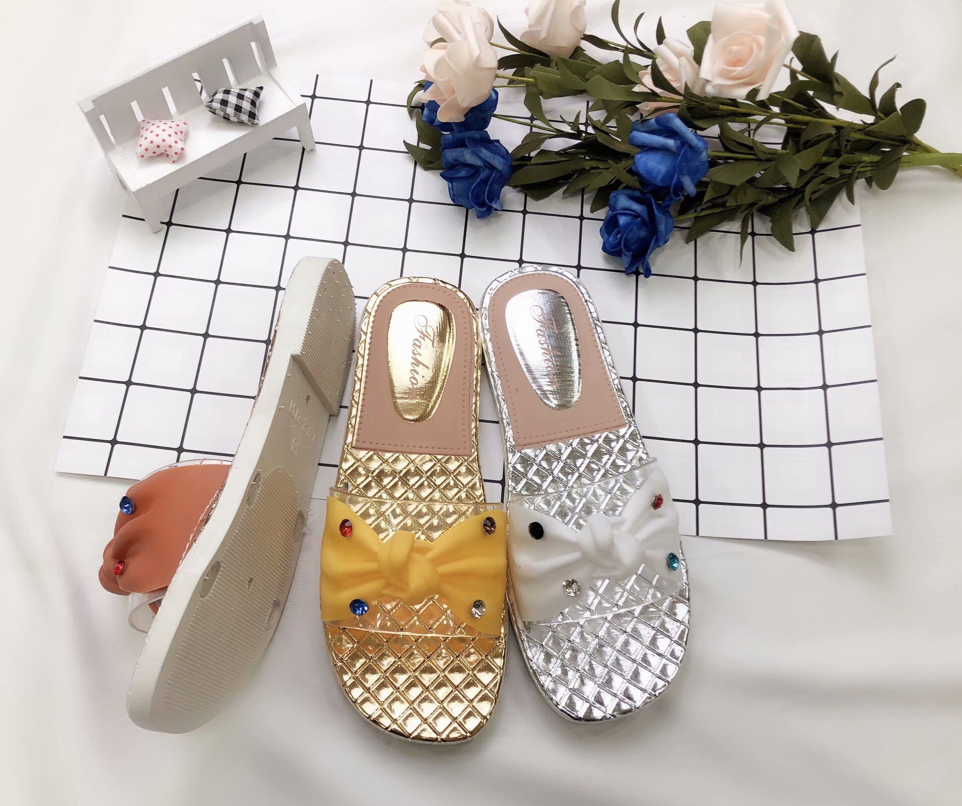dora shoes new crystal bow glossy slippers