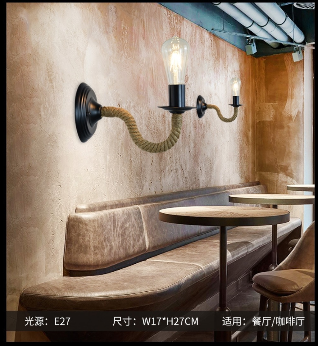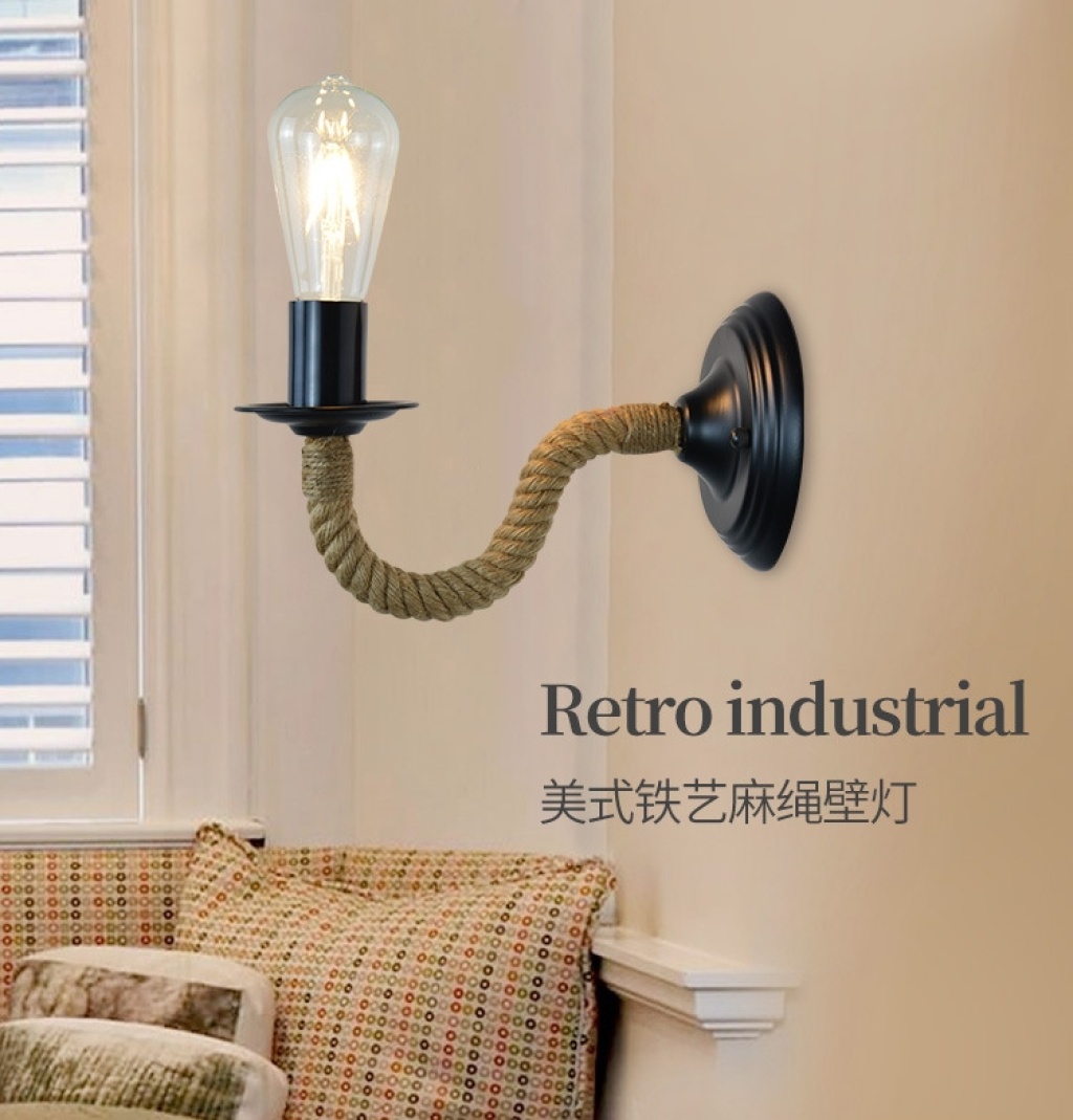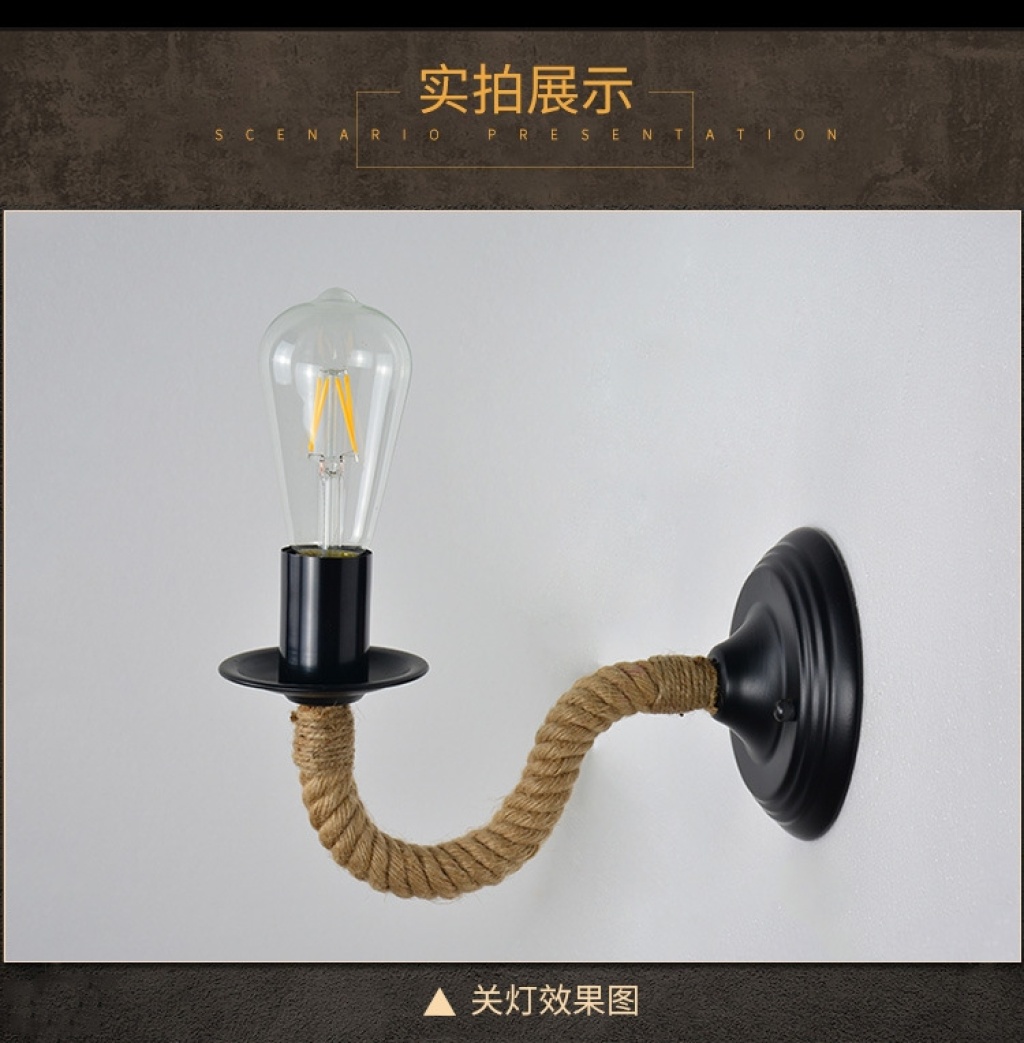 exclusive for cross-border american country industrial style bar cafe hemp rope wrought iron aisle bedside lamp wall lamp wholesale