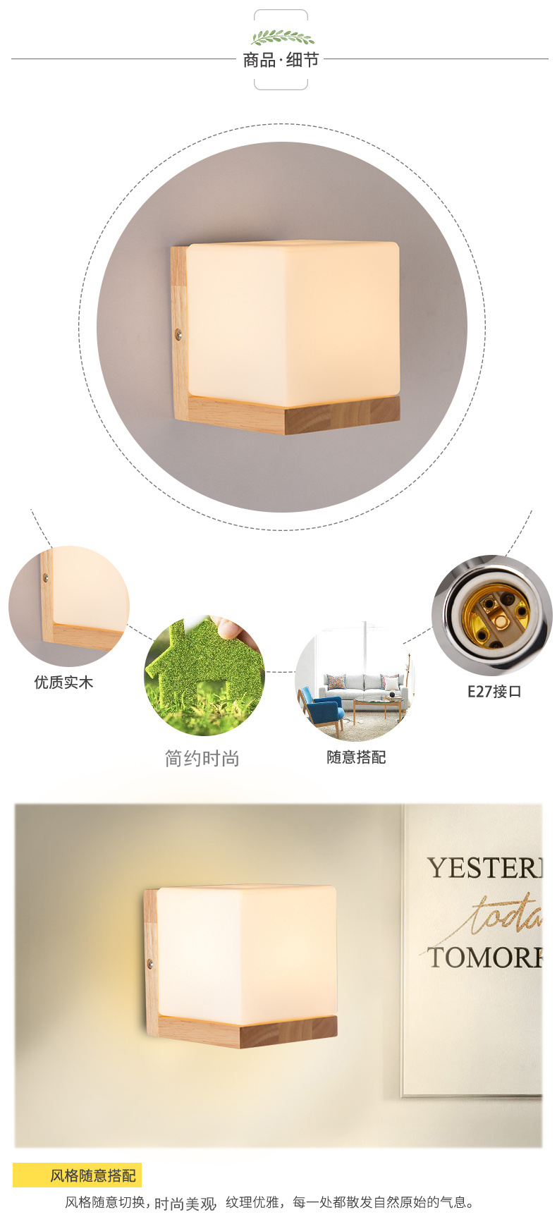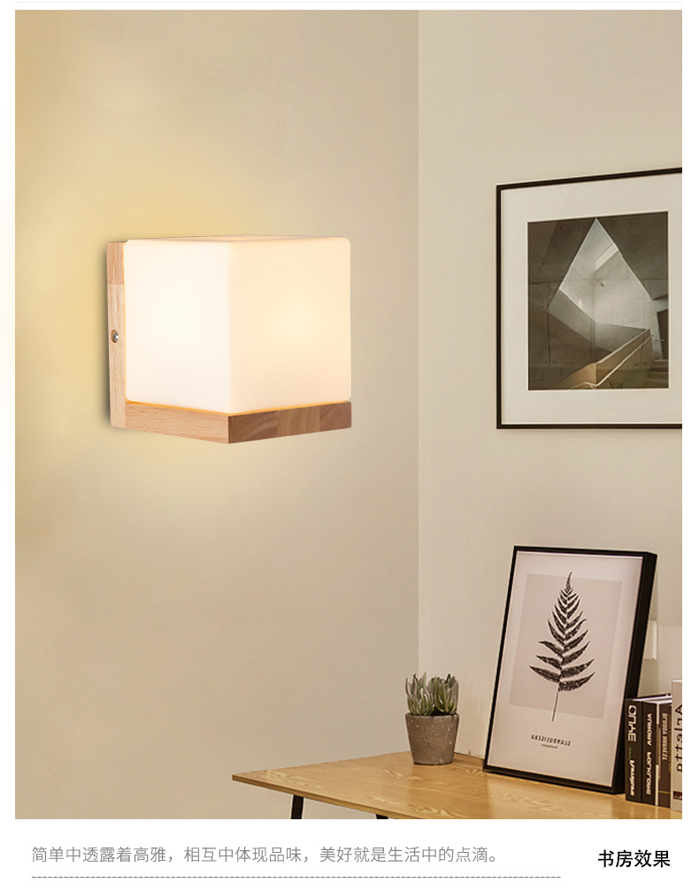 Nordic bedroom bedside wall lamp, creative LED living room indoor wood art wall lamp, corridor stair corridor corridor lamp