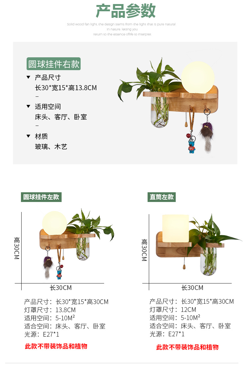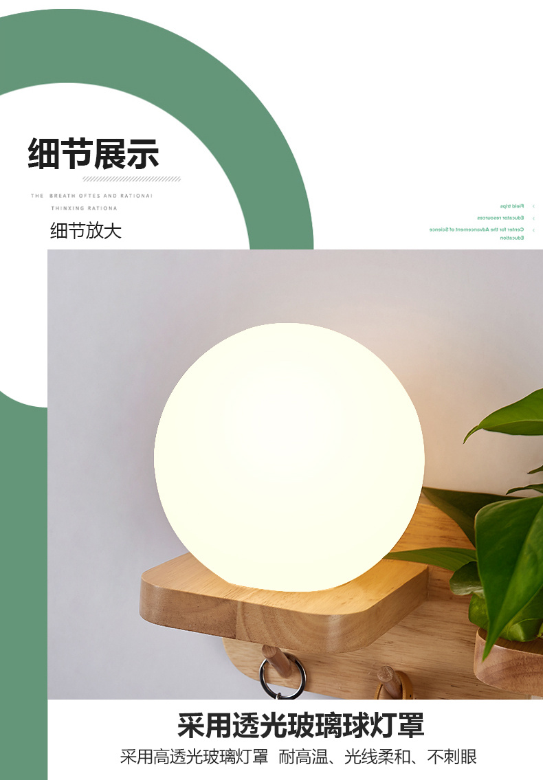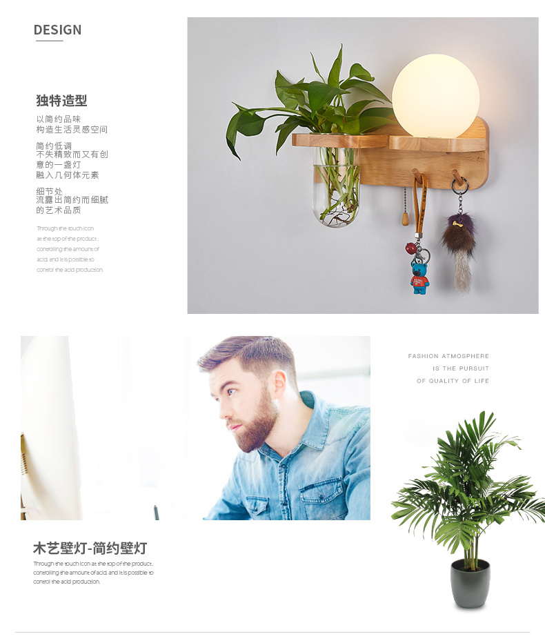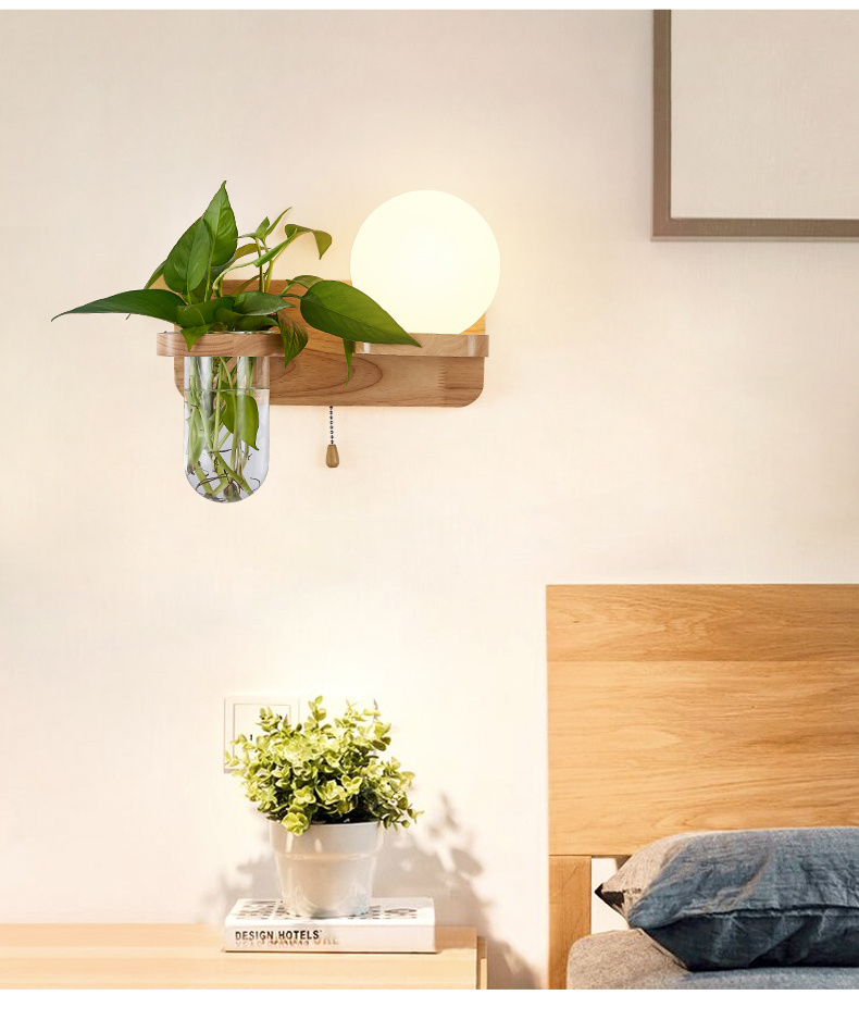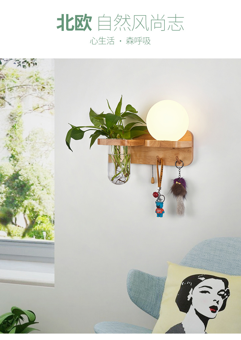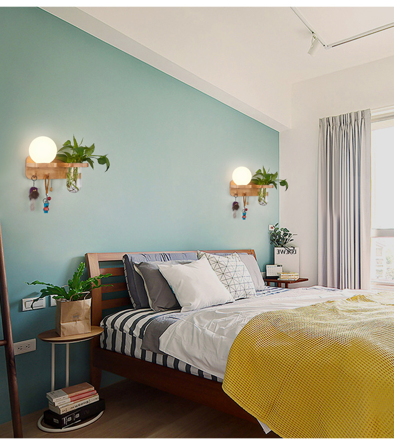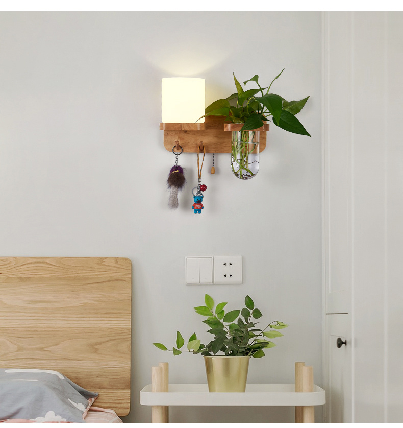 Modern bedroom bedside wall lamp, minimalist creative solid wood LED, living room corridor corridor hotel hotel wall lamp