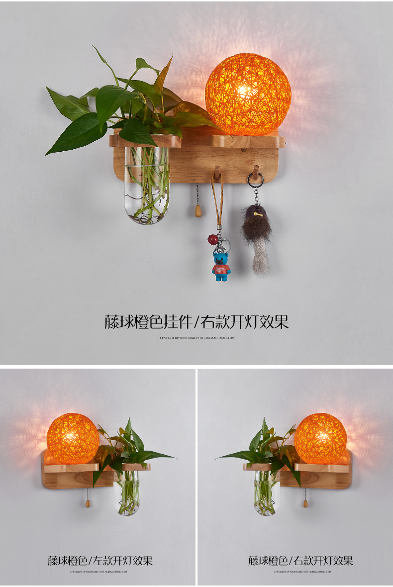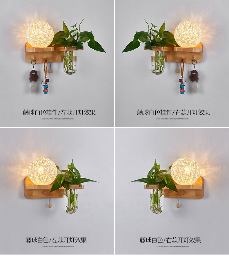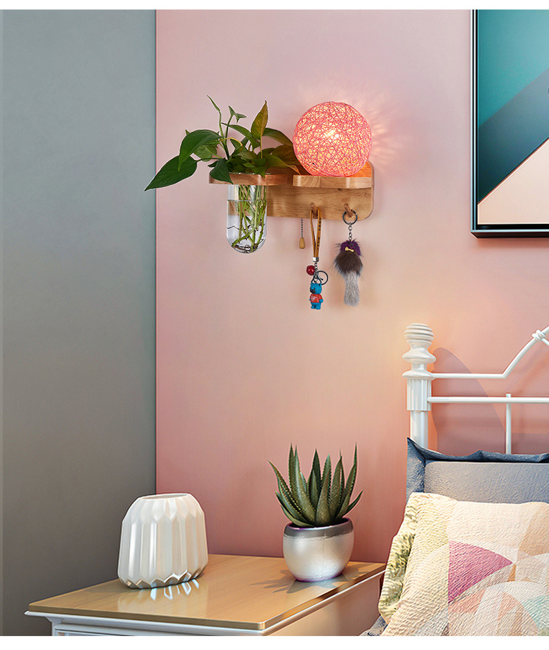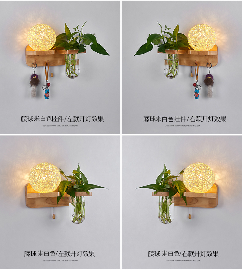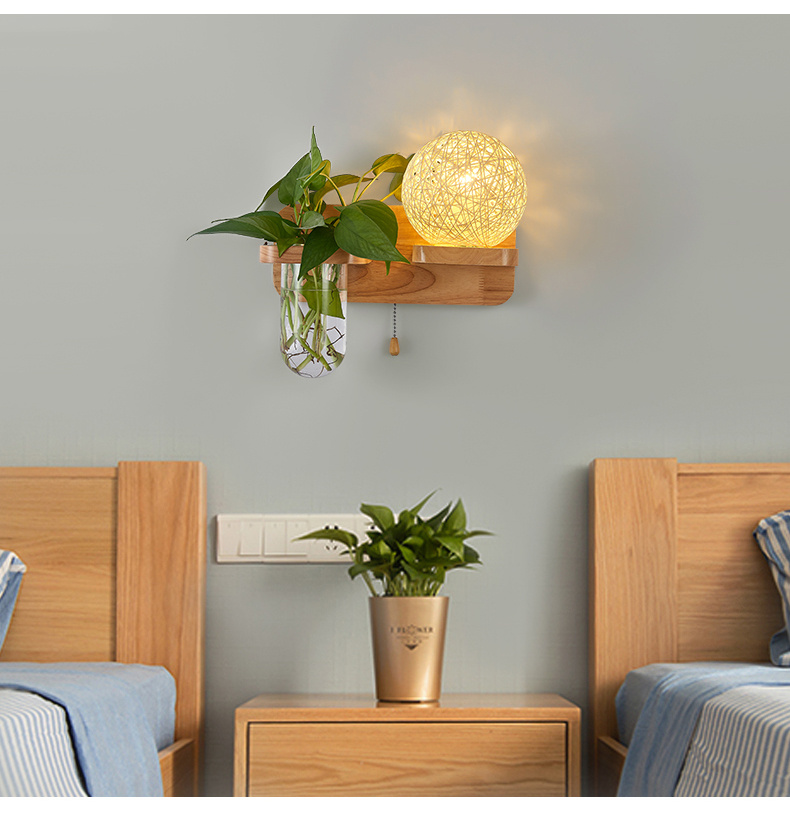 Modern bedroom bedside wall lamp, European style living room corridor corridor LED balcony lamp, solid wood plant