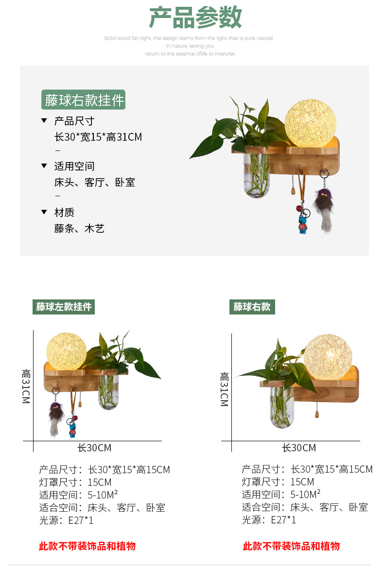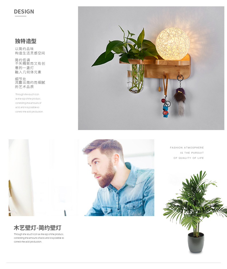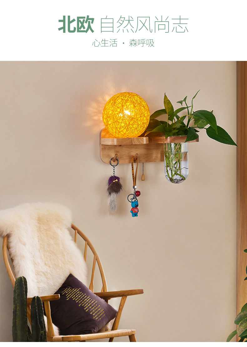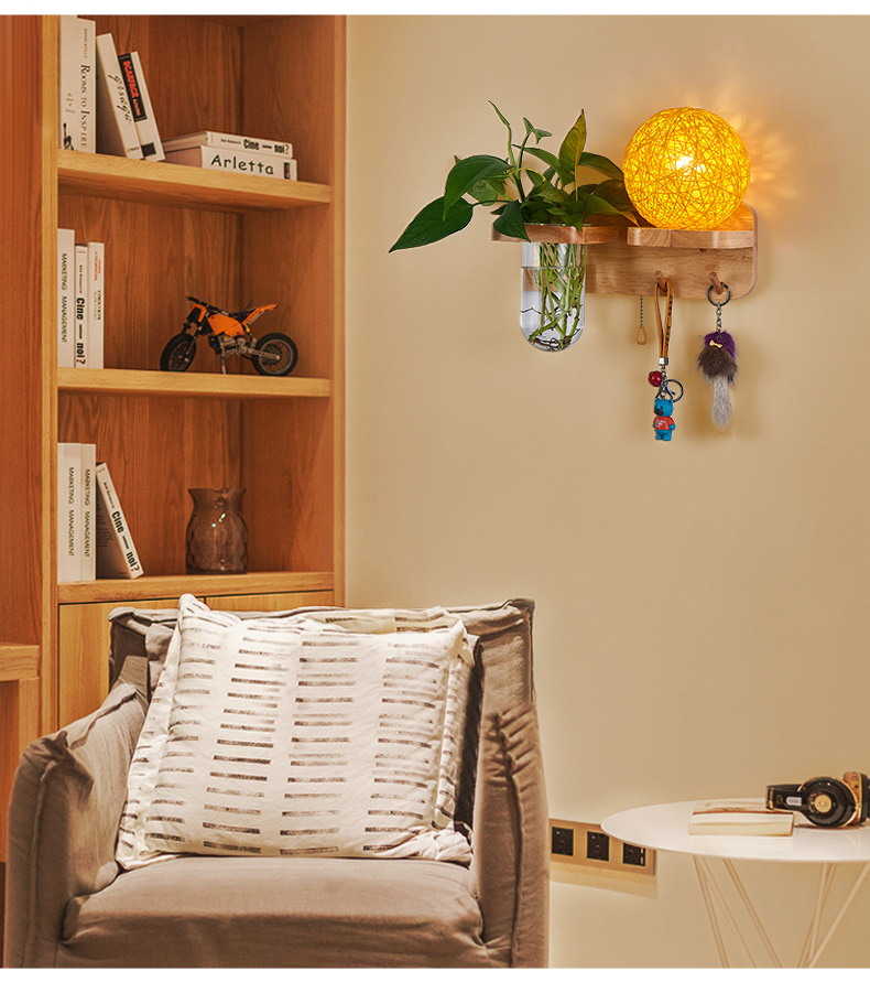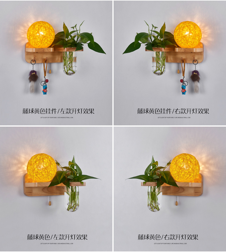 Modern bedroom bedside wall lamp, European style living room corridor corridor LED balcony lamp, solid wood plant